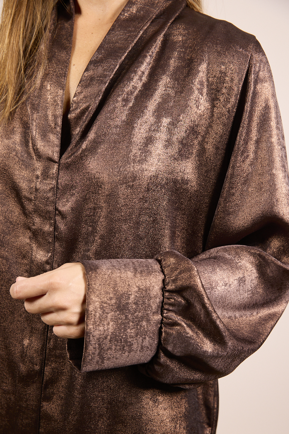 Camicia fluida con bottoni, effetto metallizzato, possibilità di abbinarla con il suo pantalone. 100% poliestere
