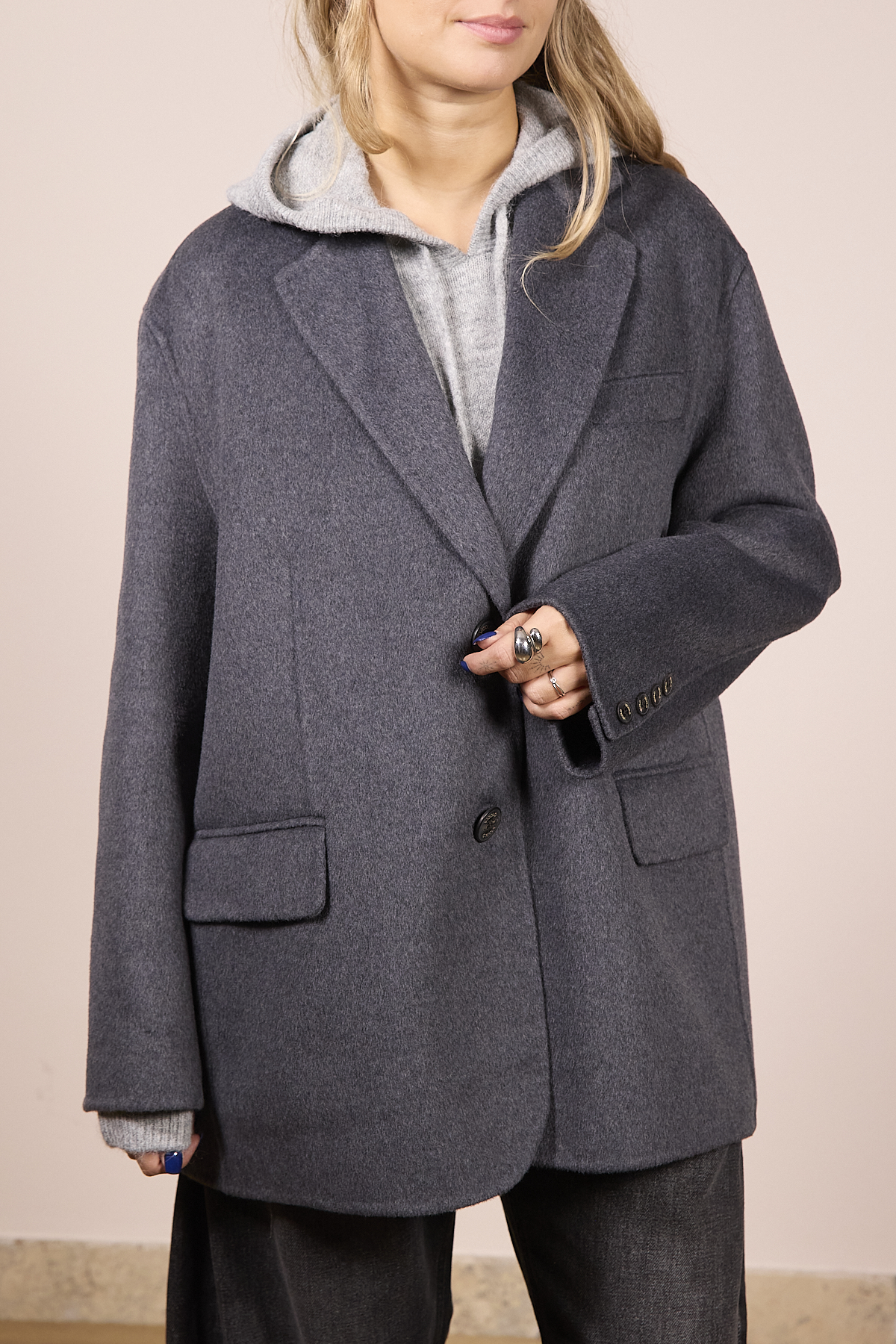 Cappotto corto modello blazer in misto lana. 50% Lana 50% Poliestere