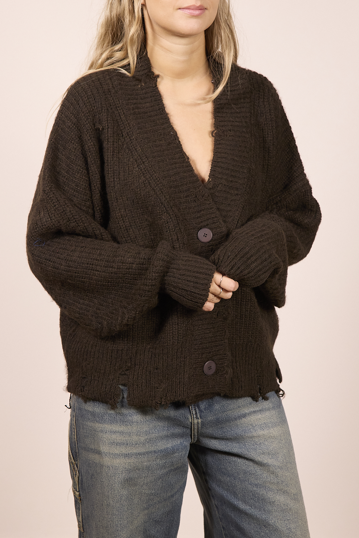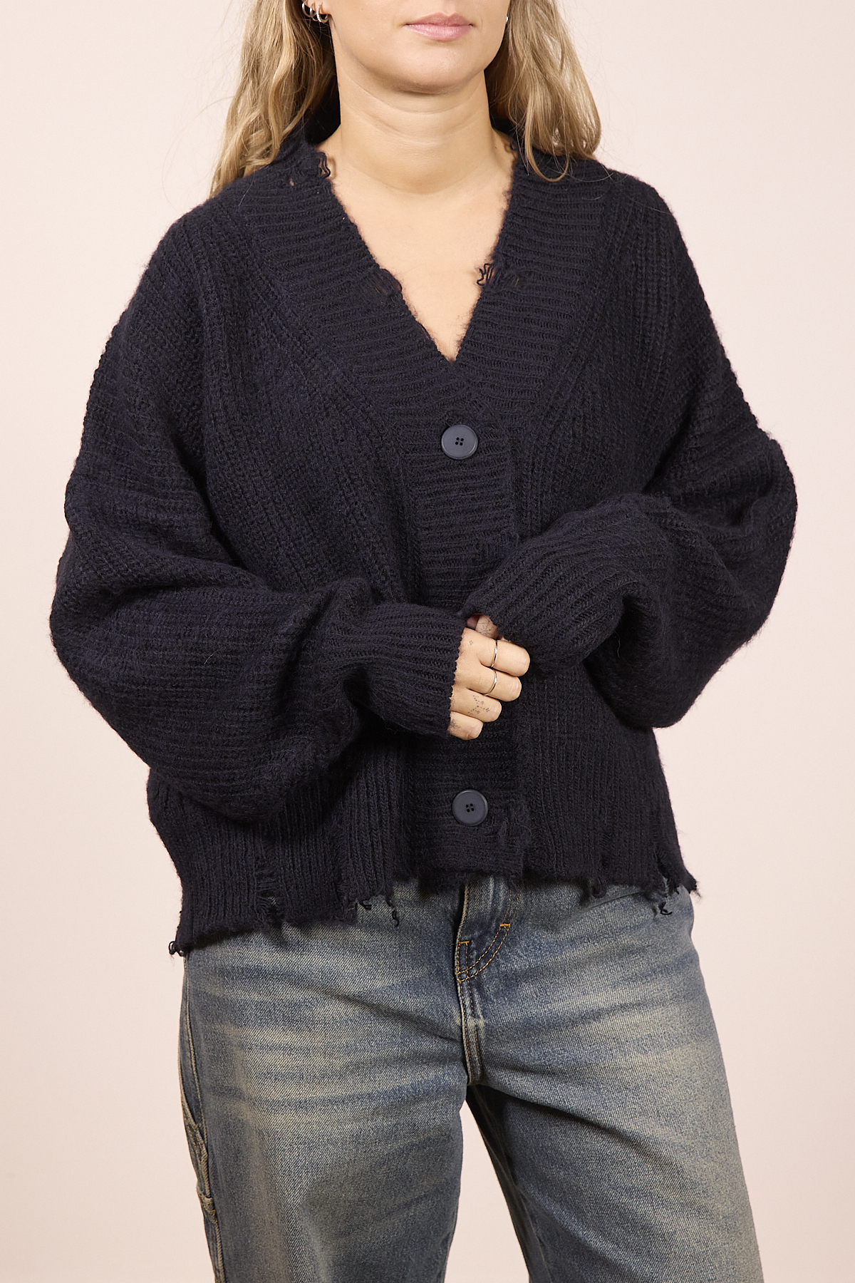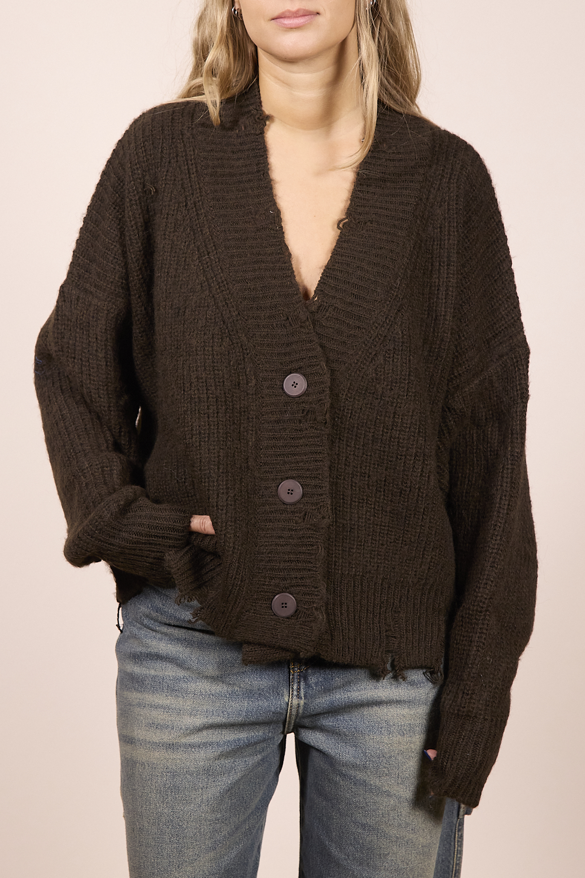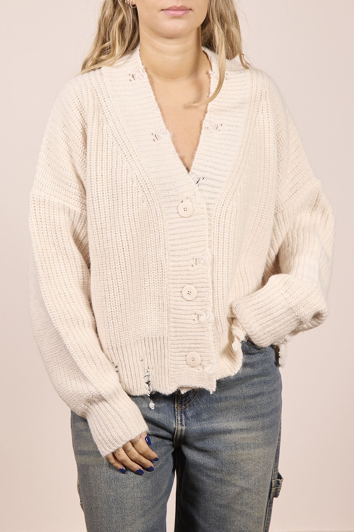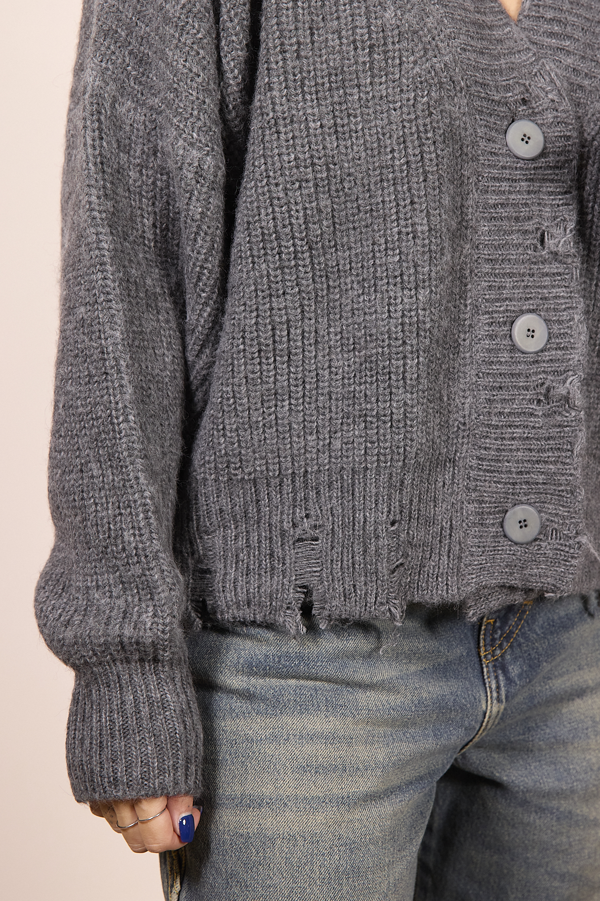 Cardigan in maglia con rotture programmate, bottoni frontali. 75% Acrilico, 10% Viscosa, 10% Lana, 5% Alpaca
