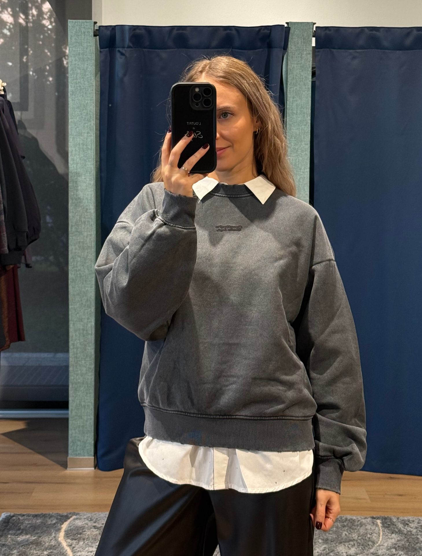 Felpa oversize felpata internamente con rotture programmate sui bordi dei polsi e in vita.