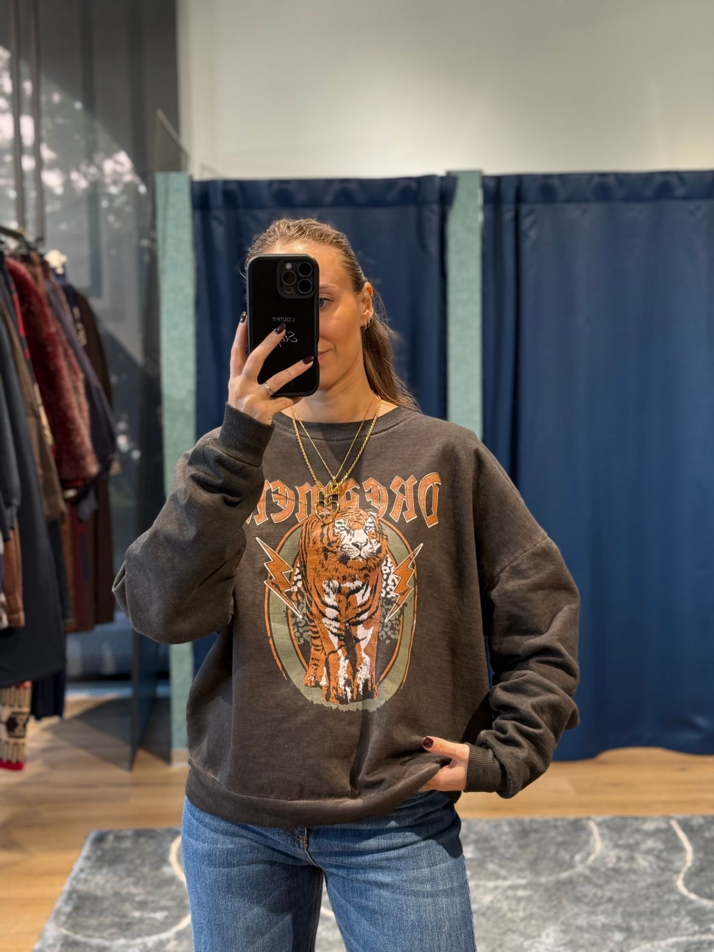 Felpa girocollo effetto slavato con stampa frontale. 100% Cotone
