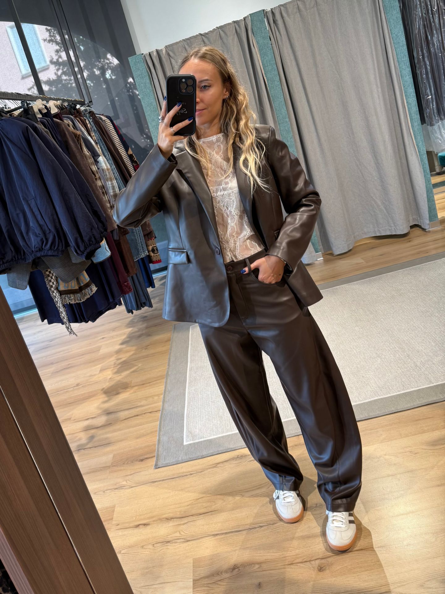 Giacca similpelle monopetto, vestibilità regolare. 100% poliestere