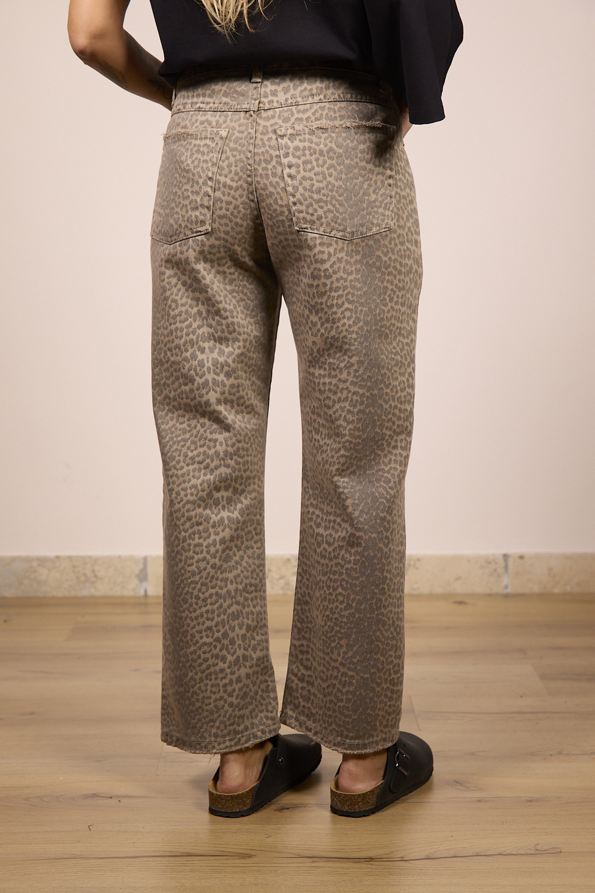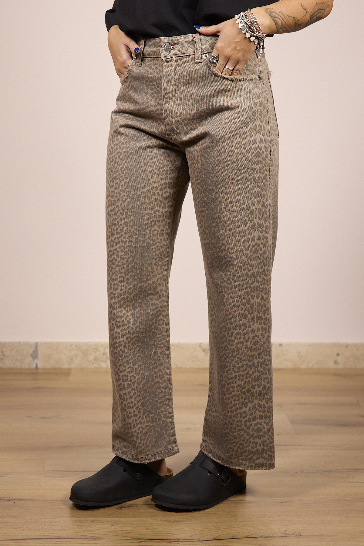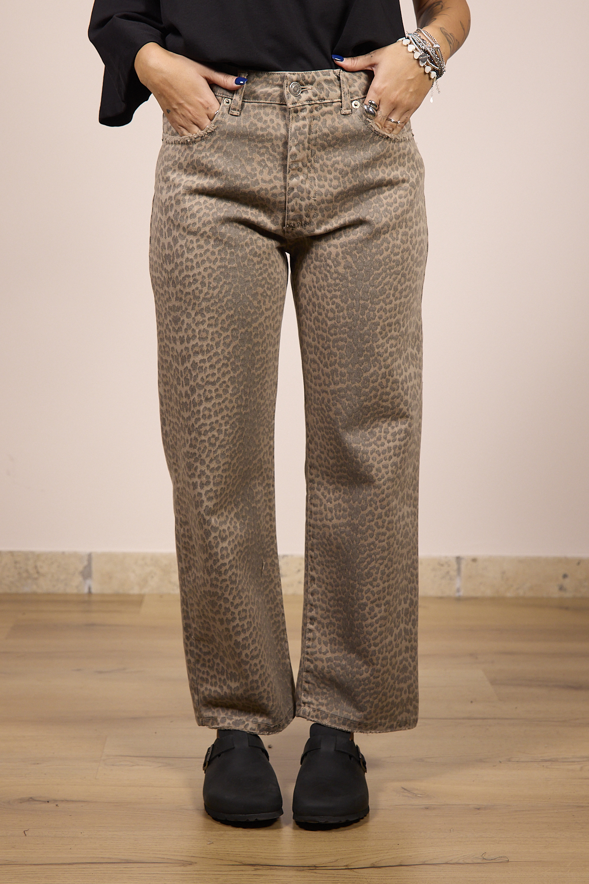 Jeans Tom denim maculato, tela morbida. Modello cropped gamba dritta, vita alta, chiusura con bottone e zip. Vestibilità regolare.