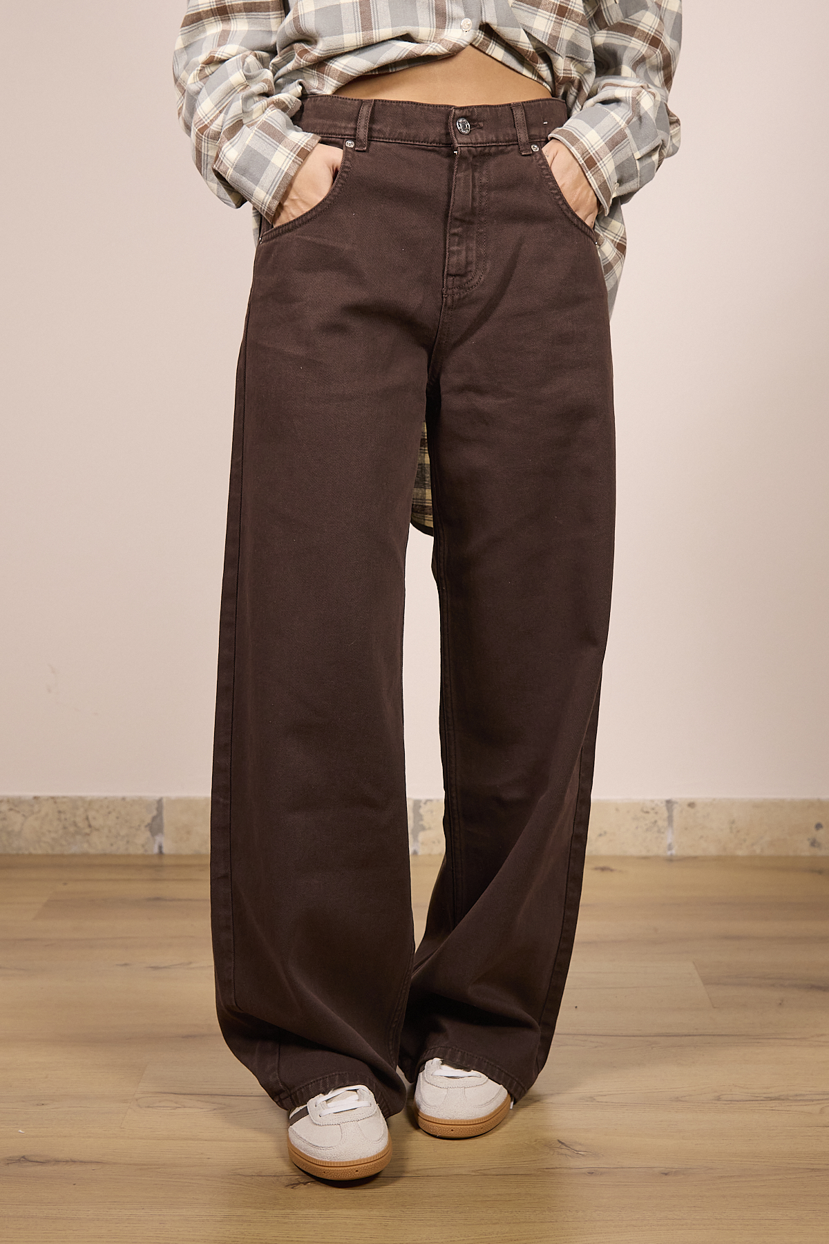 Jeans a palazzo lavaggio marrone pieno Vestibilità regolare