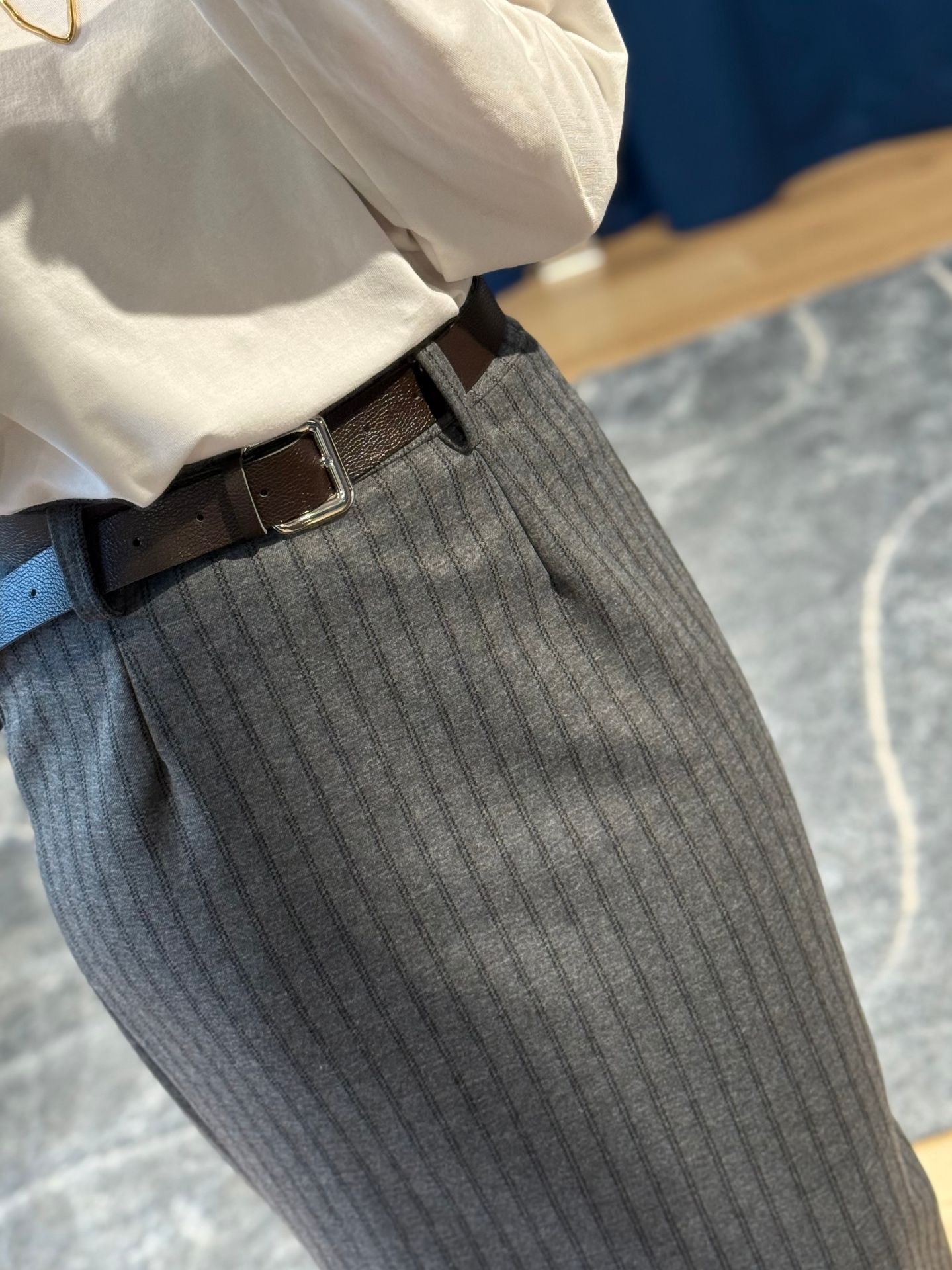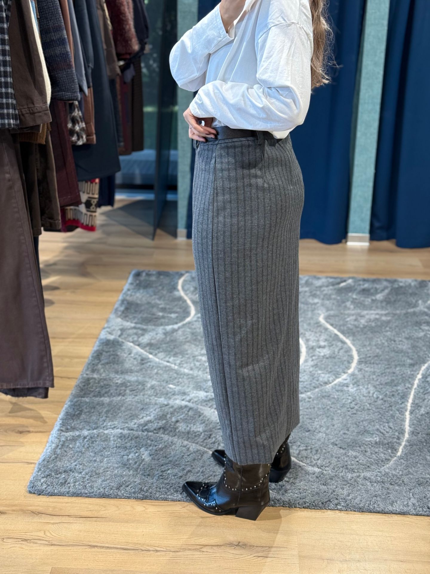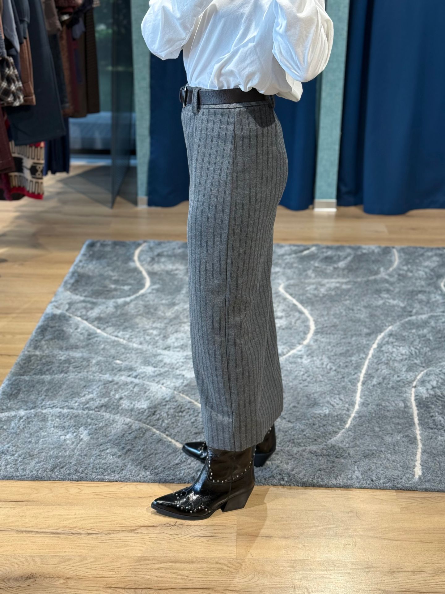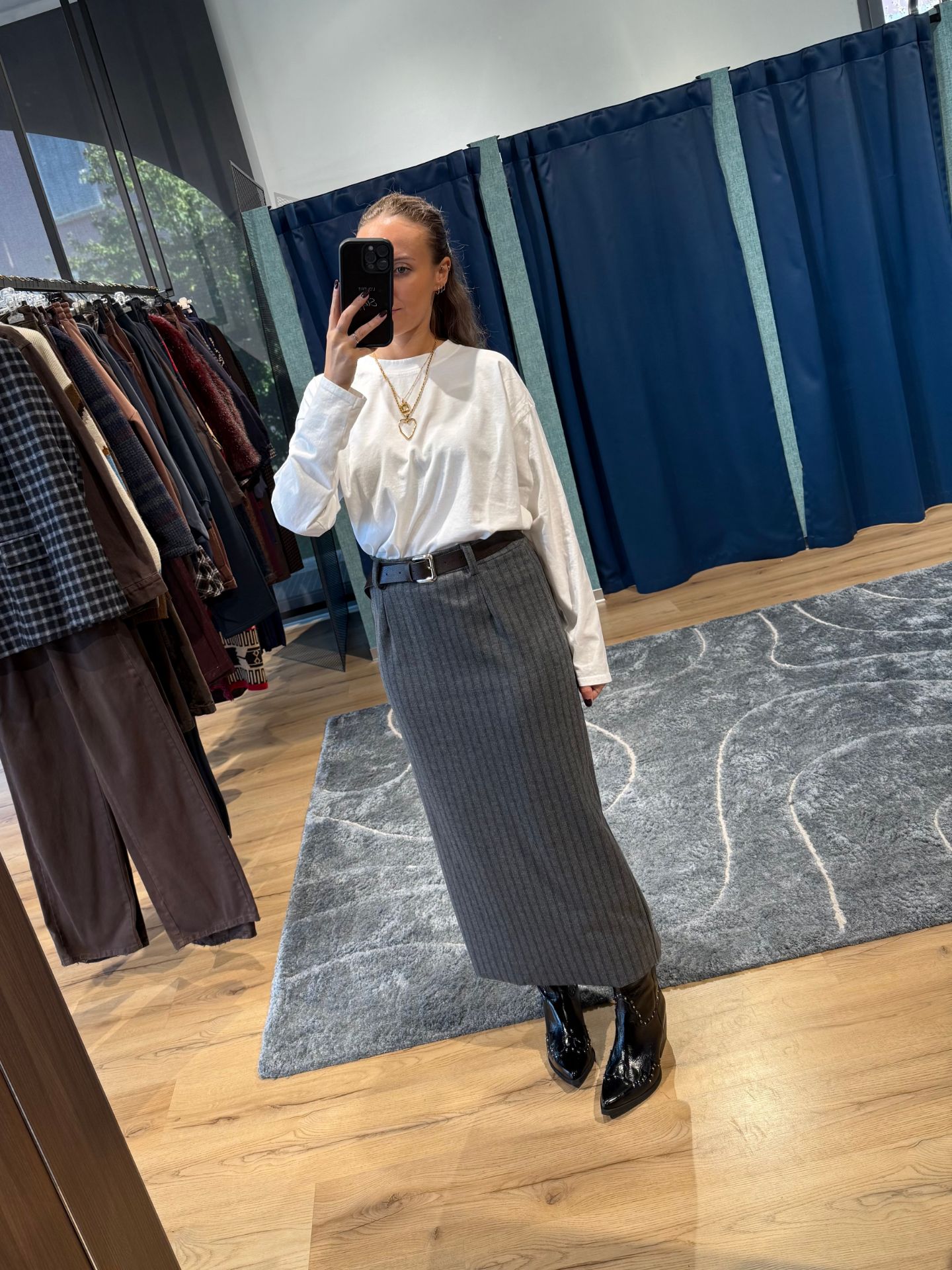 Longuette grigia gessata in tessuto punto milano. 83% Poliestere 15% Viscosa 2% Elastane