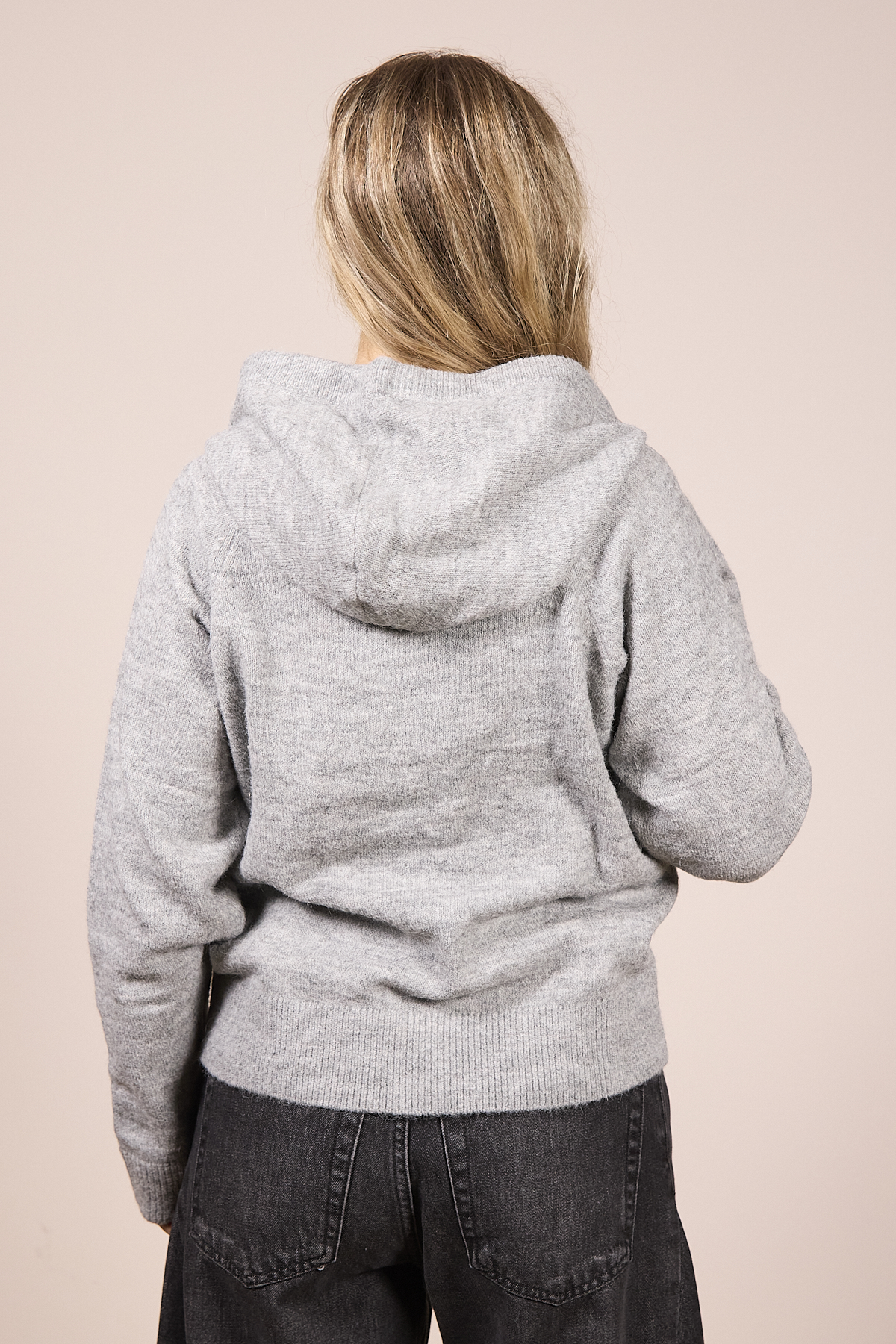 Maglioncino con cappuccio e coulisse. 43% Polyester - Recycled, 32% Acrylic, 17% Nylon, 5% Alpaca - Responsible Alpaca Standard, 3% Elastane