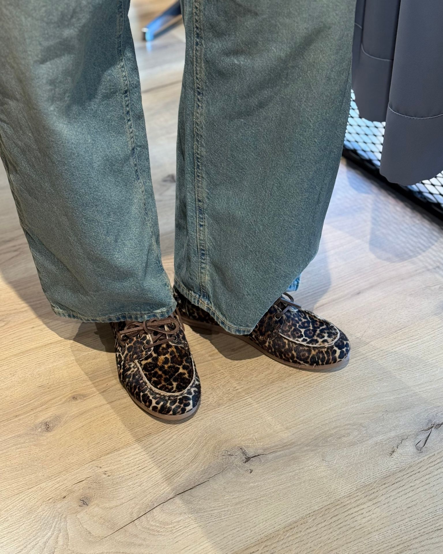 Mocassino in cavallino maculato con plantare morbido imbottito. Scelta doppio laccio.