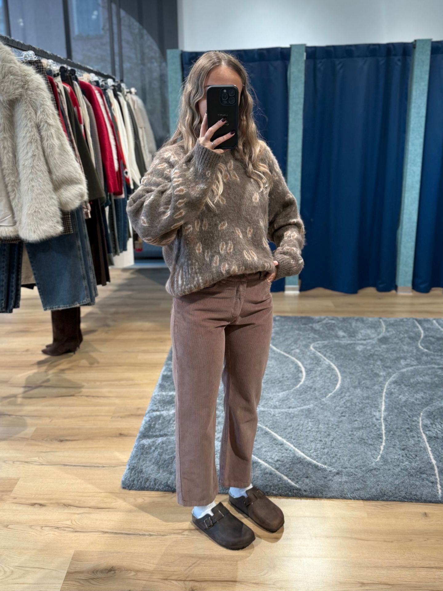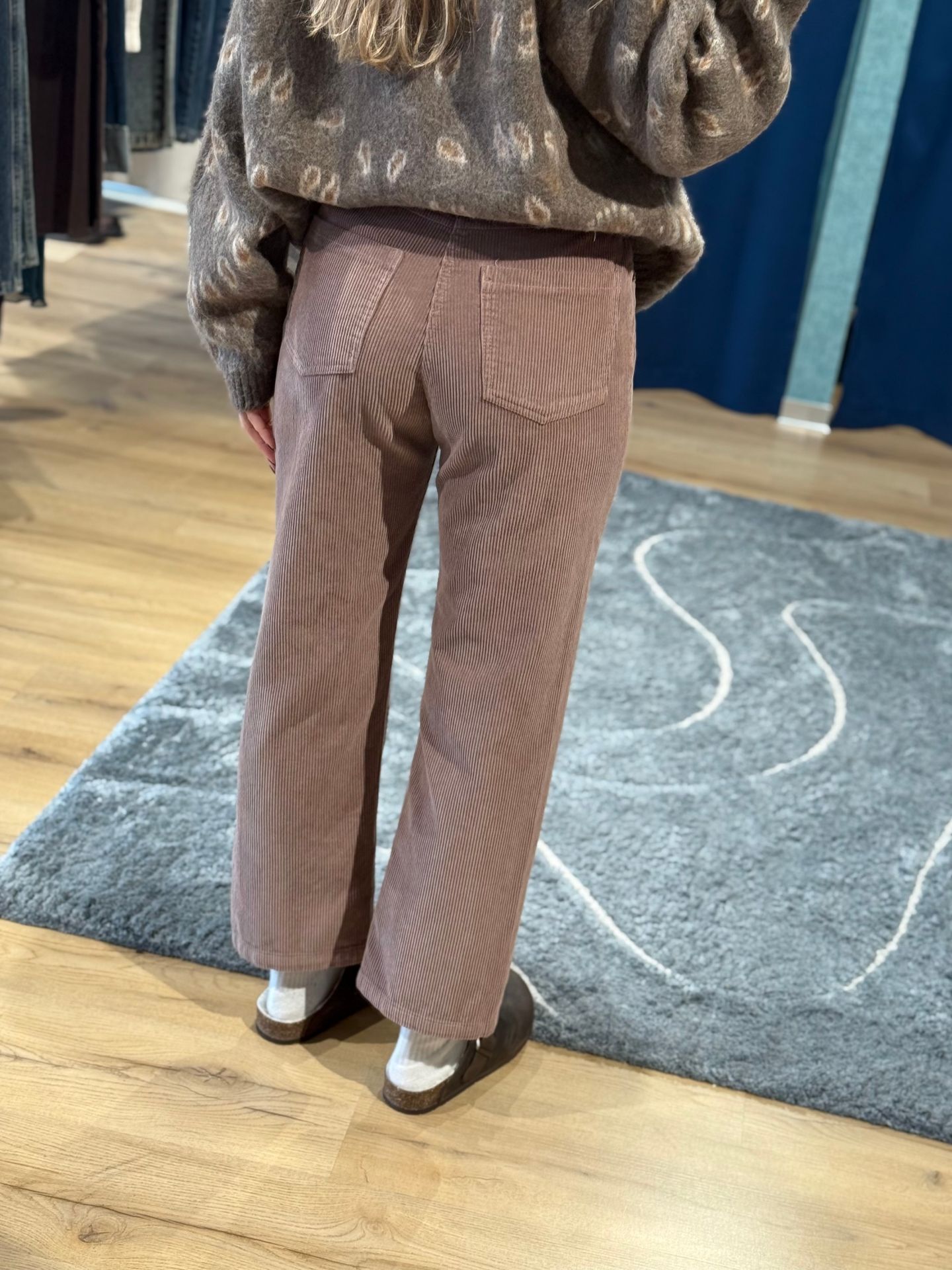 Pantalone dritto modello Tom in velluto color Taupe. Vestibilità regolare 100% Cotone