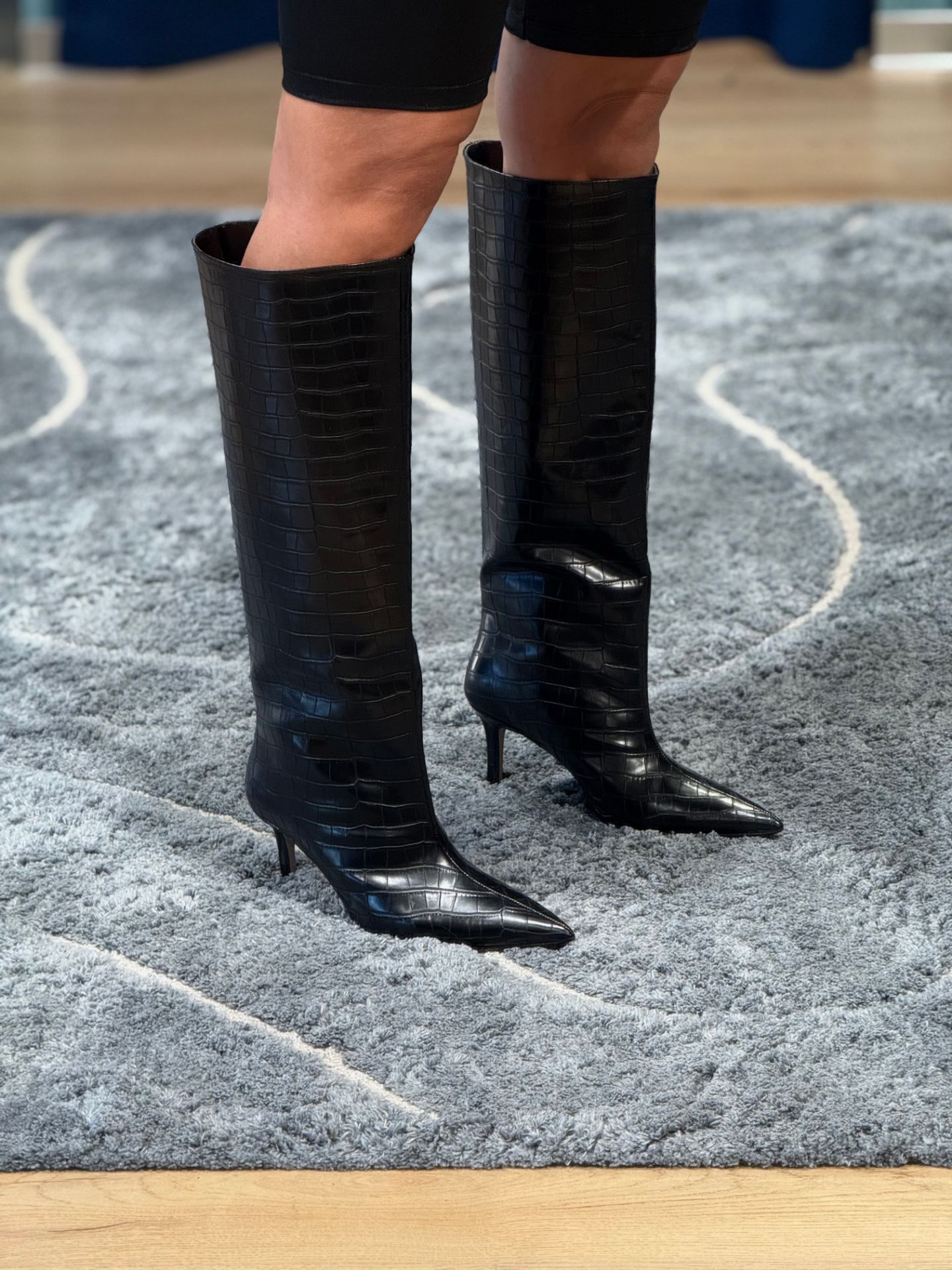 Stivale alto con tacco 8cm in similpelle effetto cocco.
