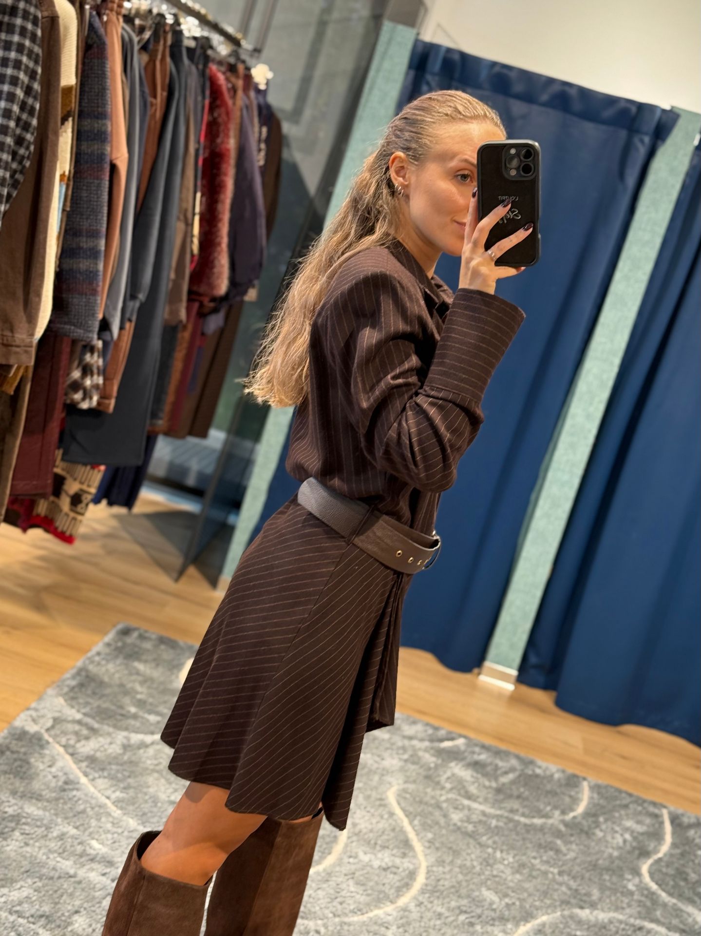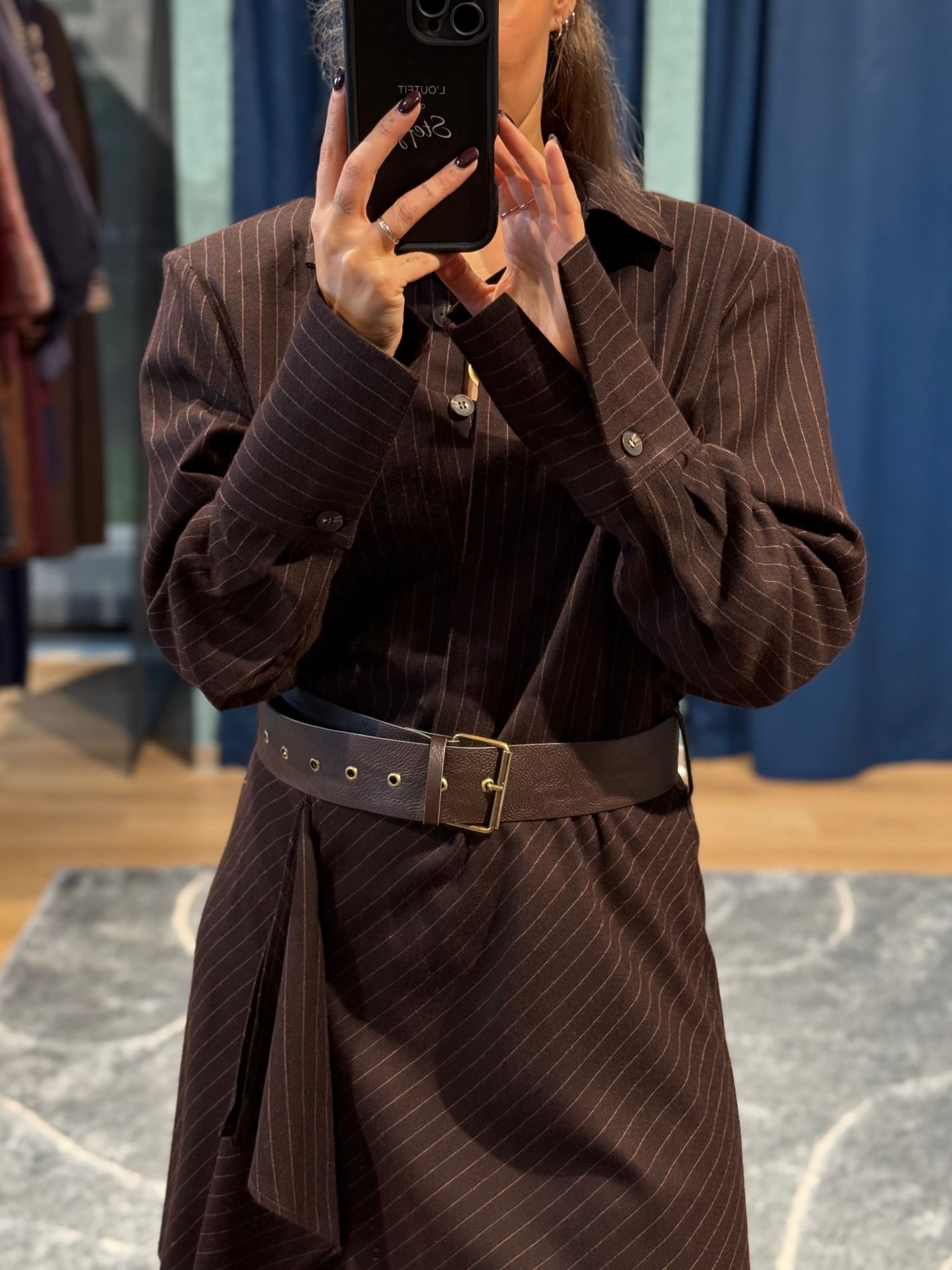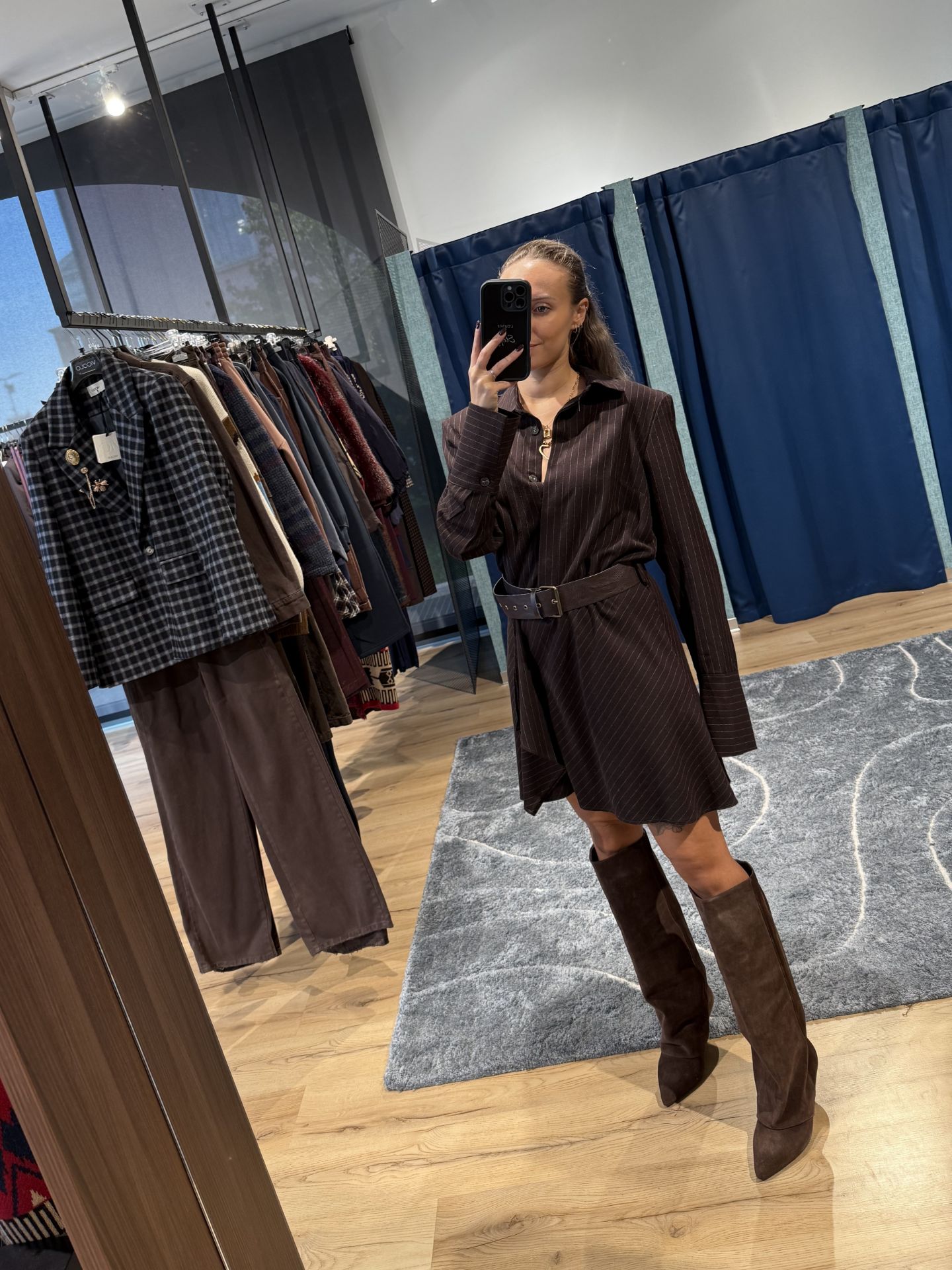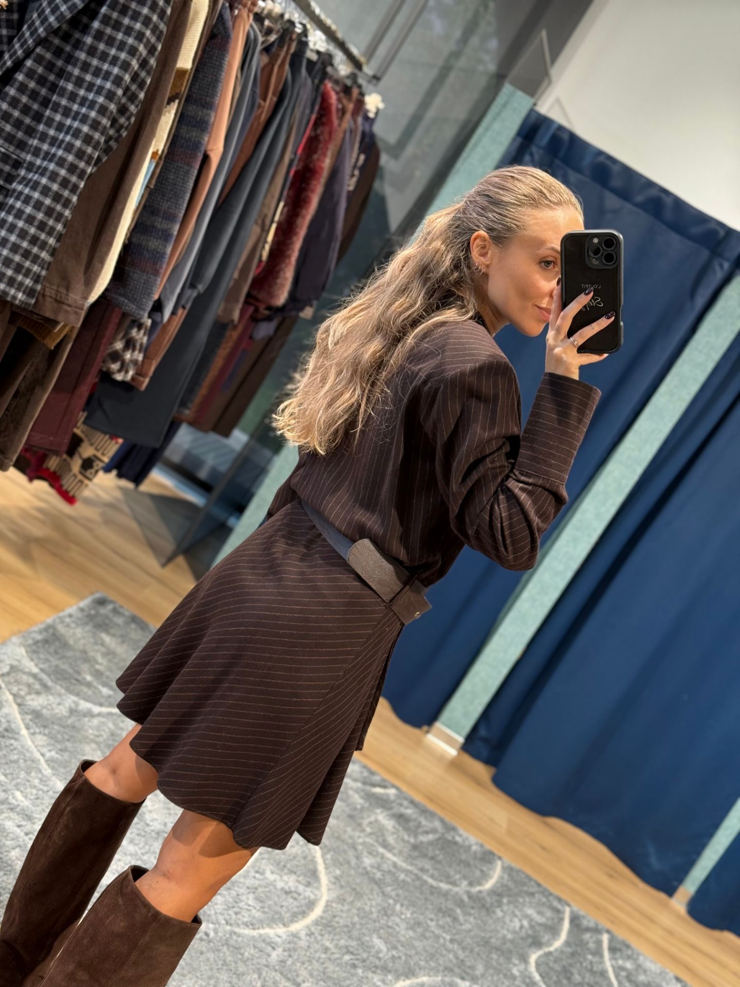 Abito corto marrone gessato.