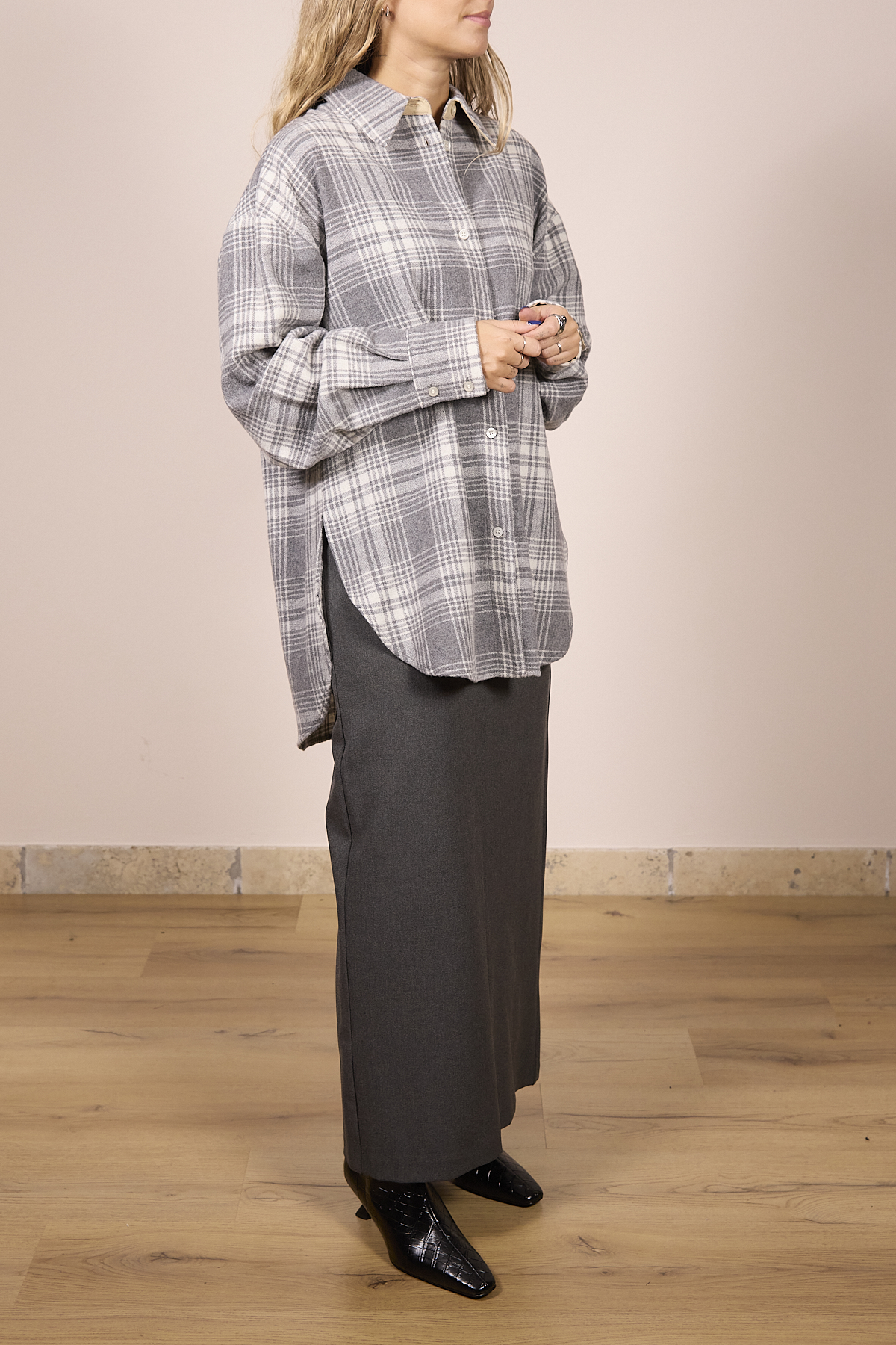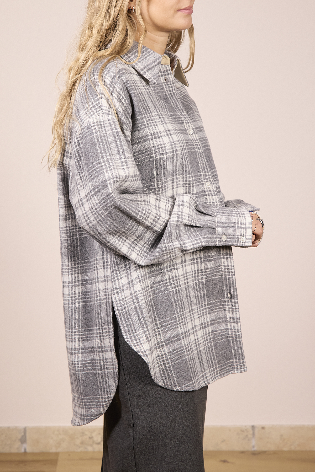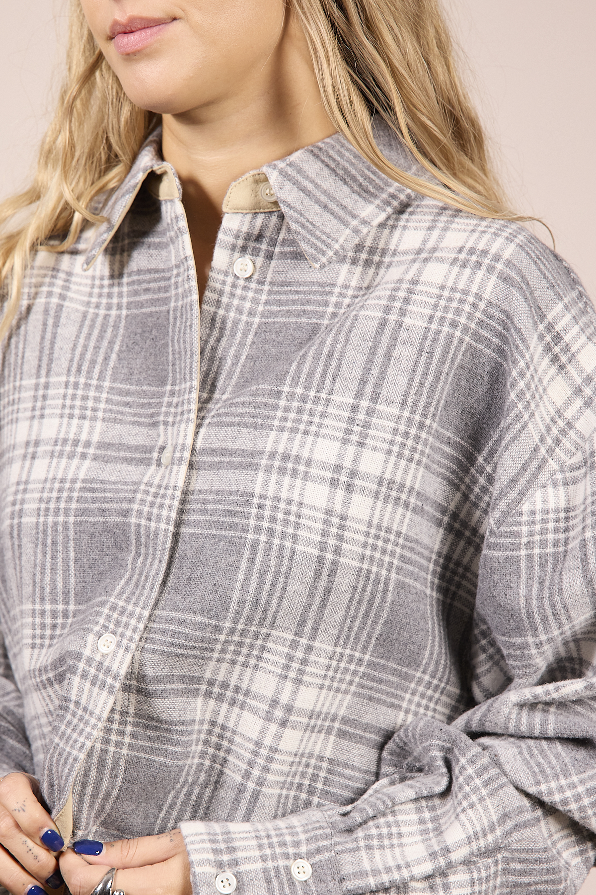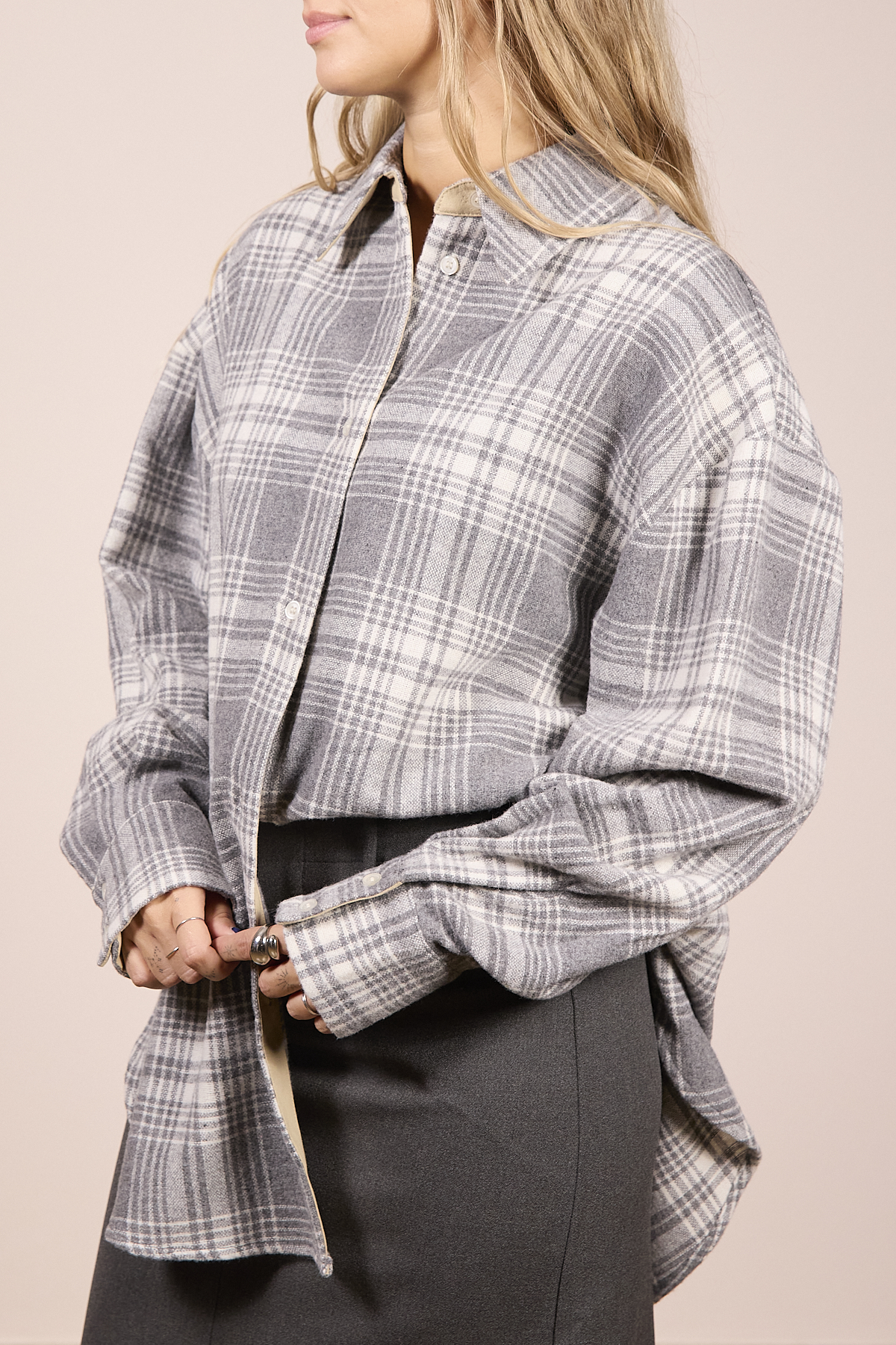 Camiciona over in misto lana a quadri, perfetta anche come cappottino. 70% Poliestere 30% Lana