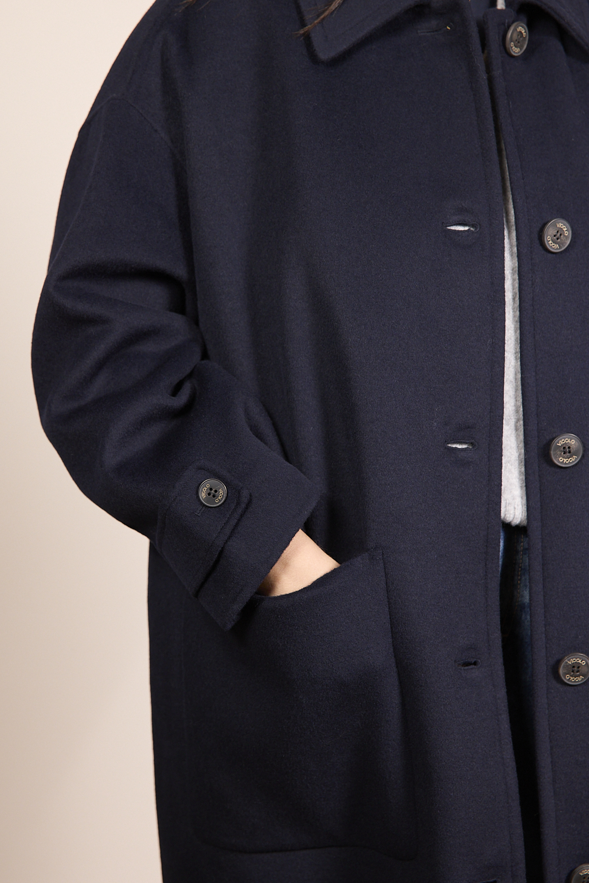 Cappotto lungo in misto lana, con fodera imbottita all'interno. Vestibilità oversize.