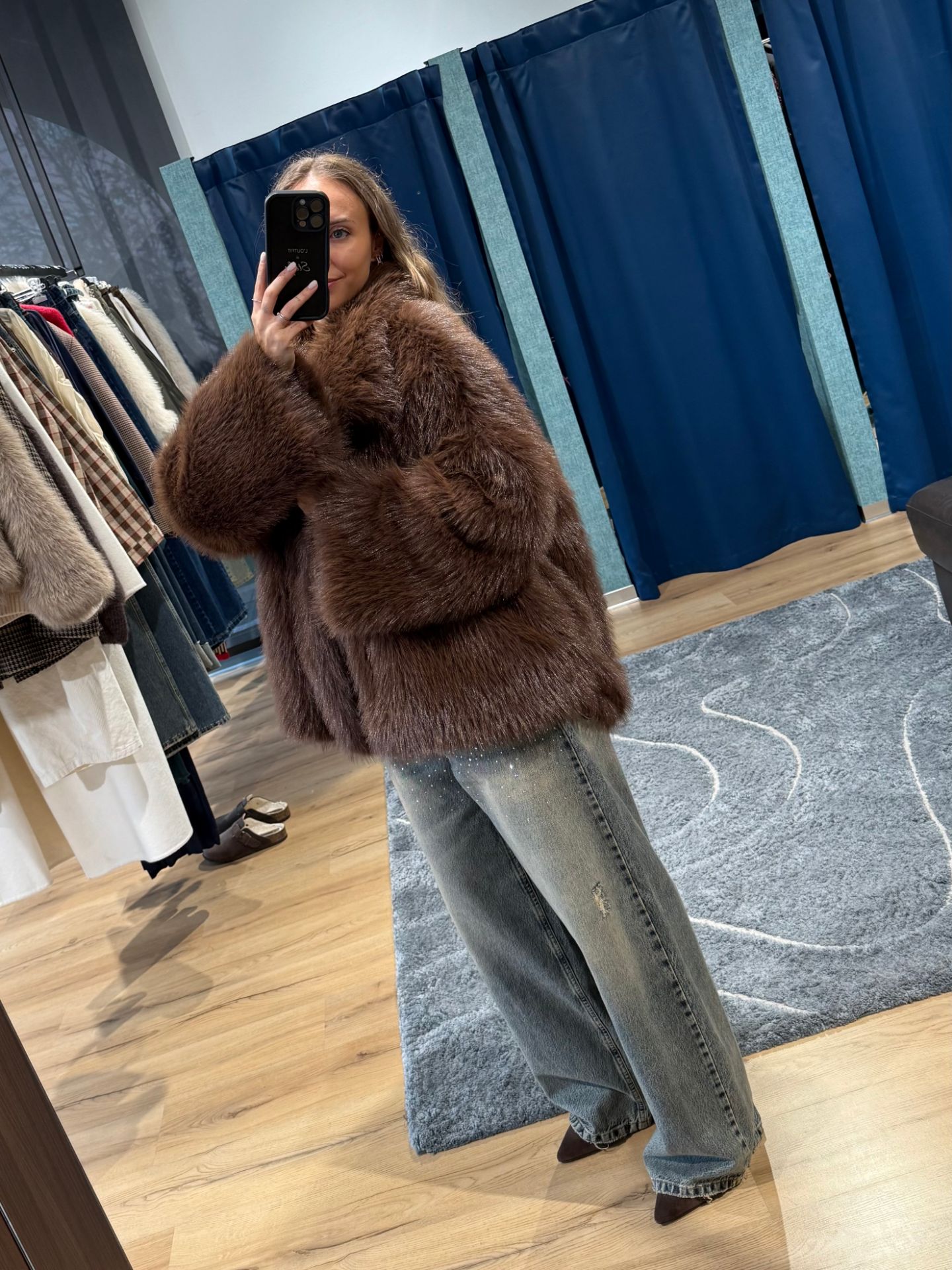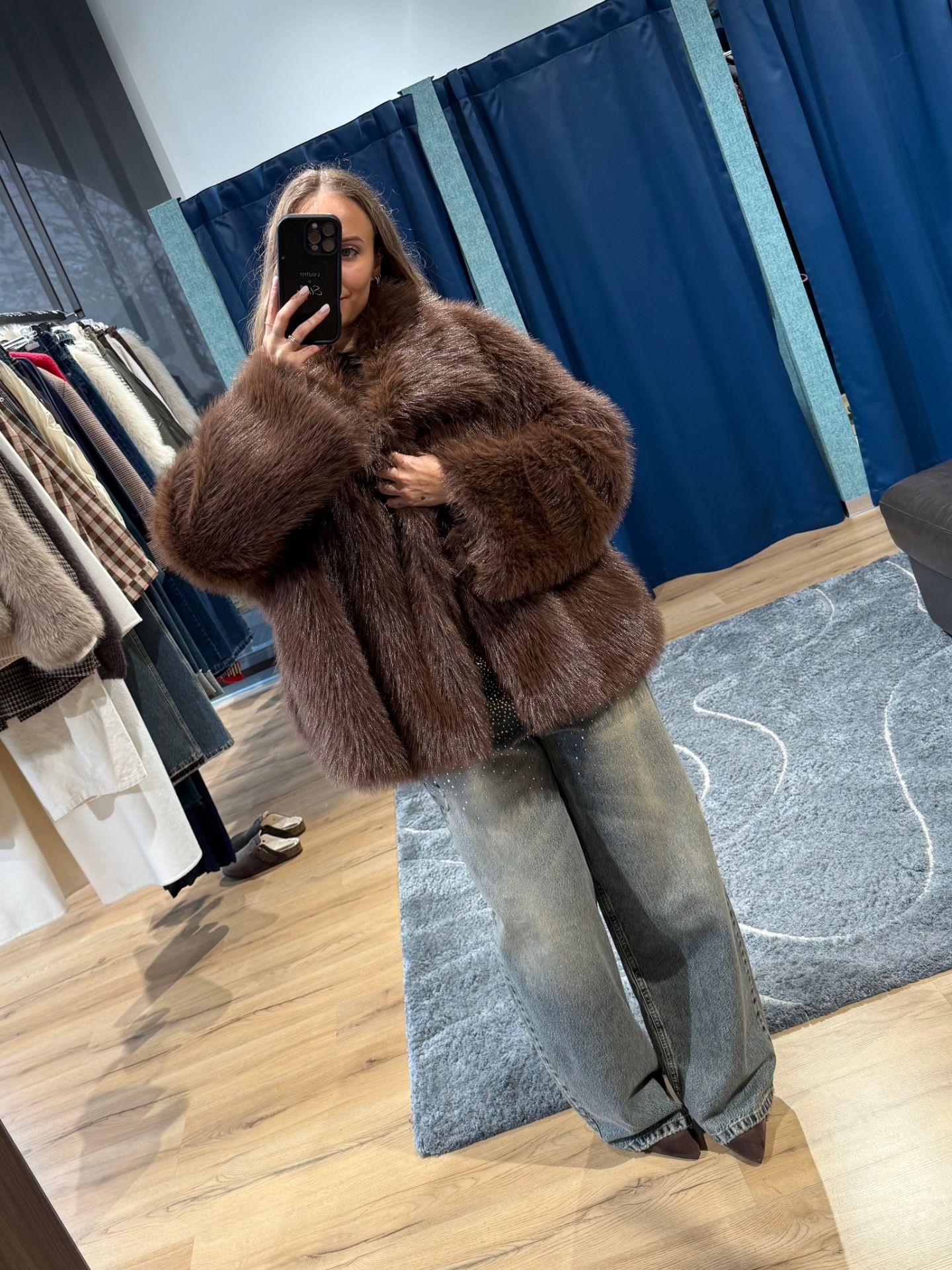 Ecopelliccia modello Bear, marrrone. Vestibilità morbida. 100% poliestere