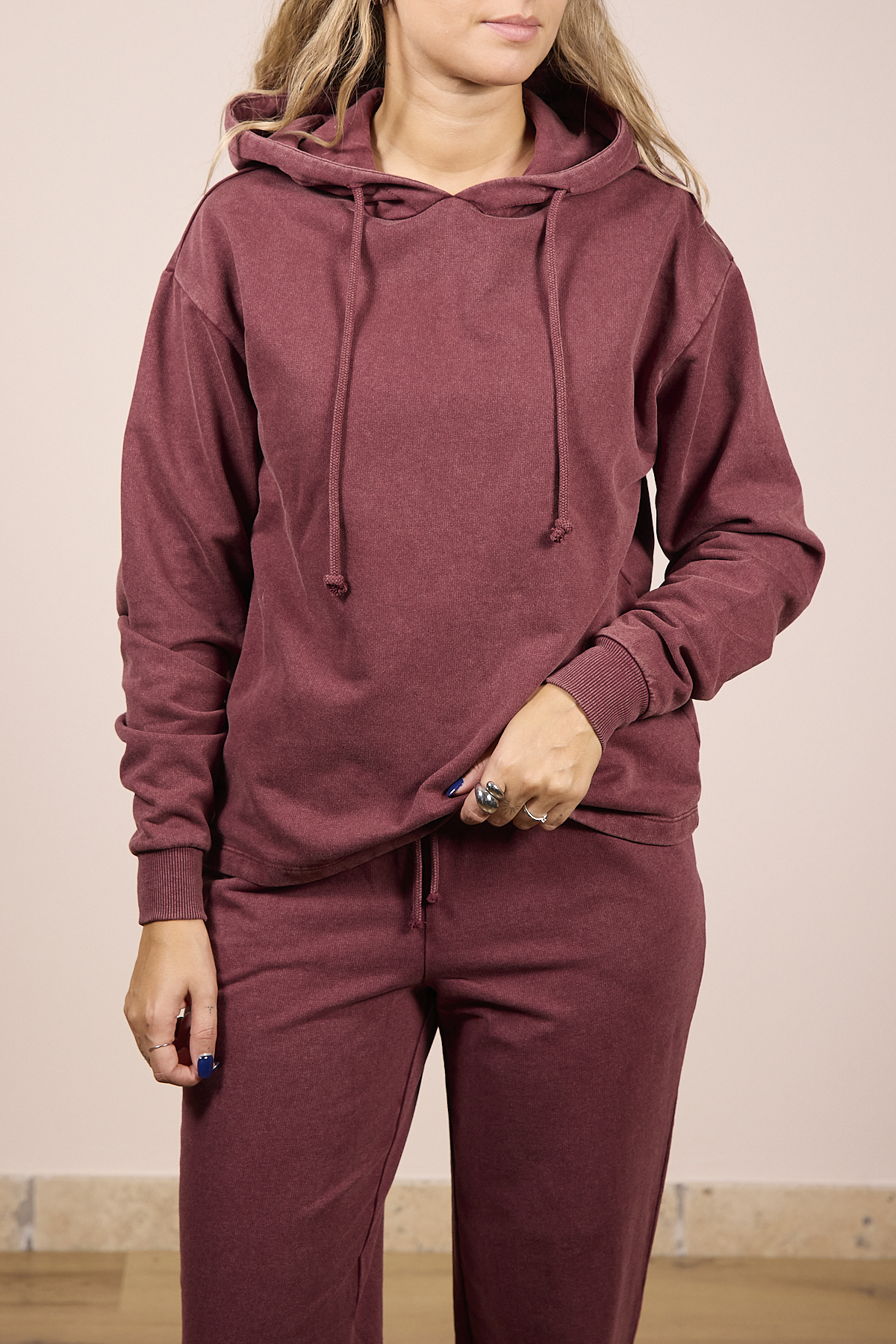 Felpa felpata con cappuccio, lavaggio stonewash