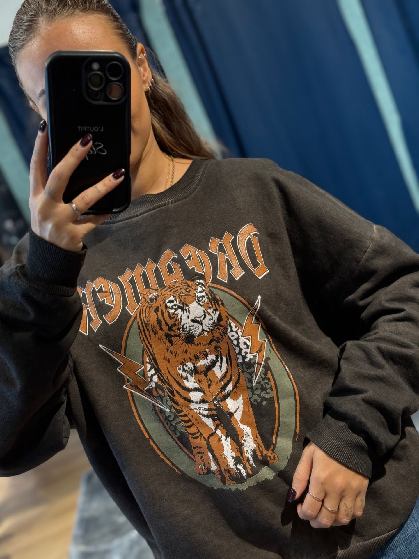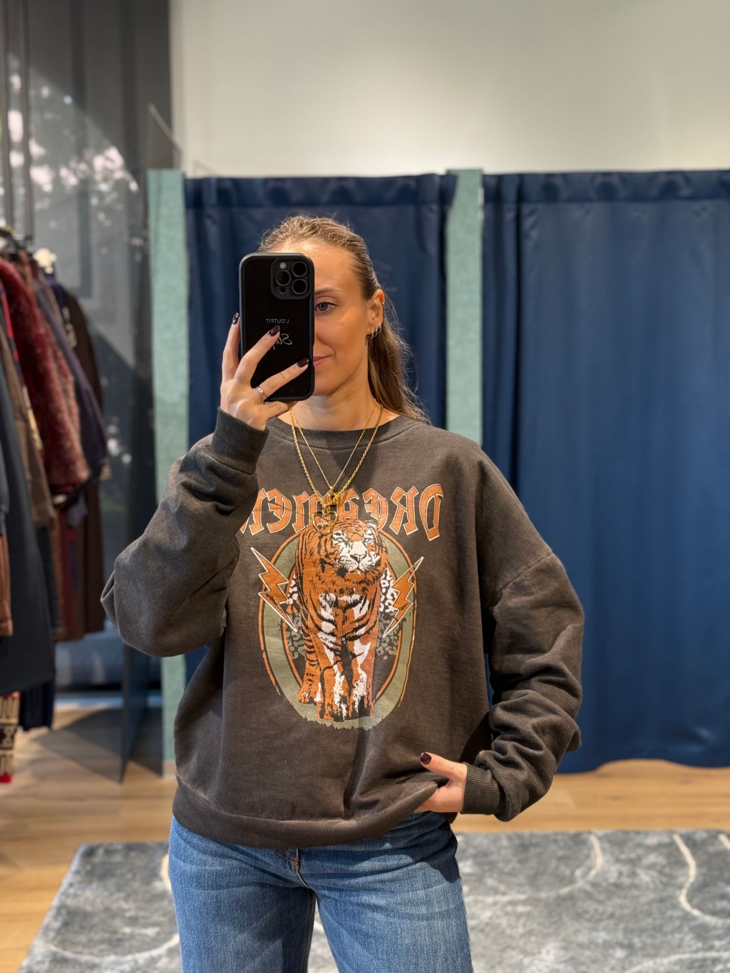 Felpa girocollo effetto slavato con stampa frontale. 100% Cotone