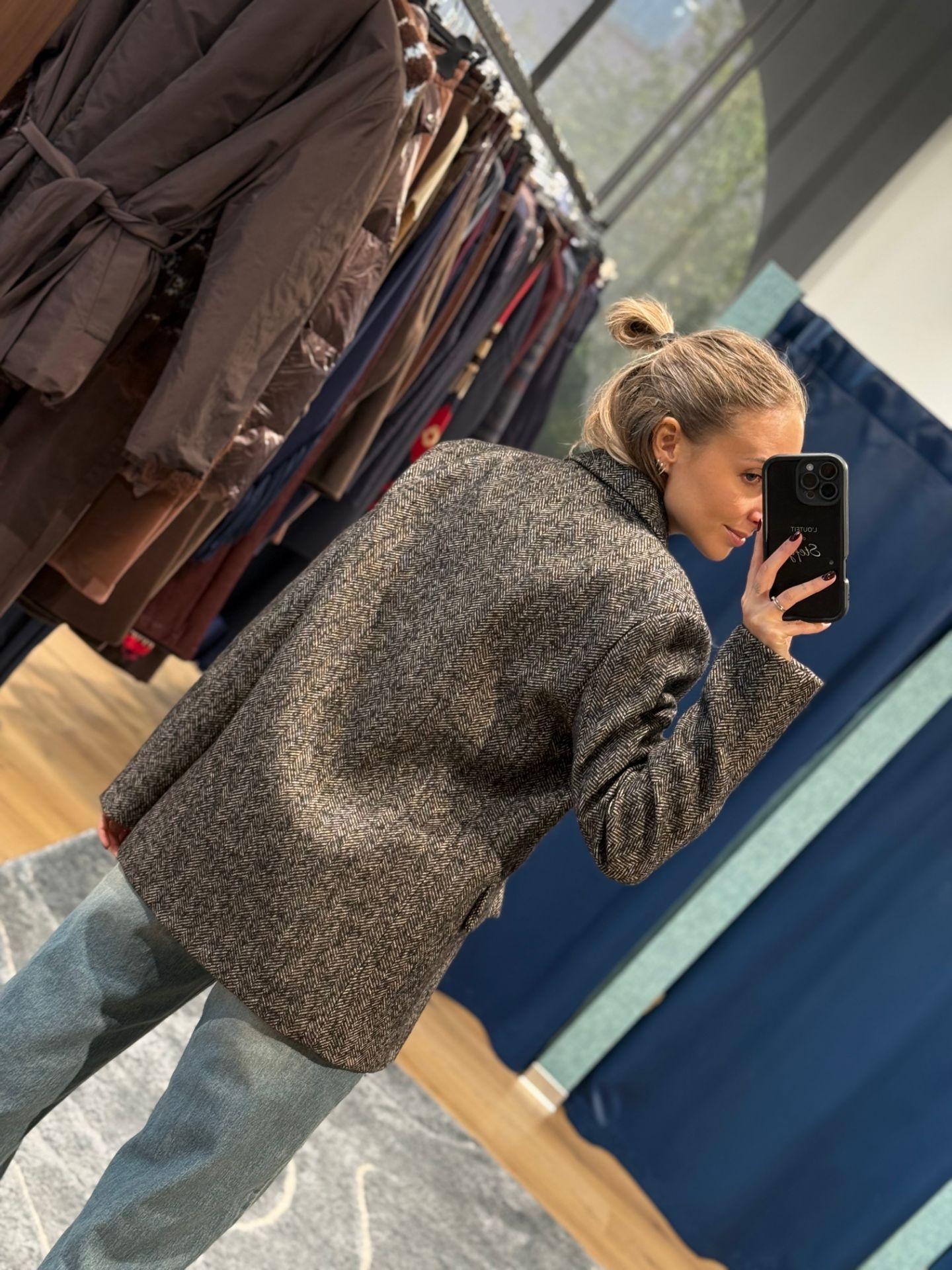 Giacca spigata foderata chiusura monopetto due bottoni. Spille removibili.