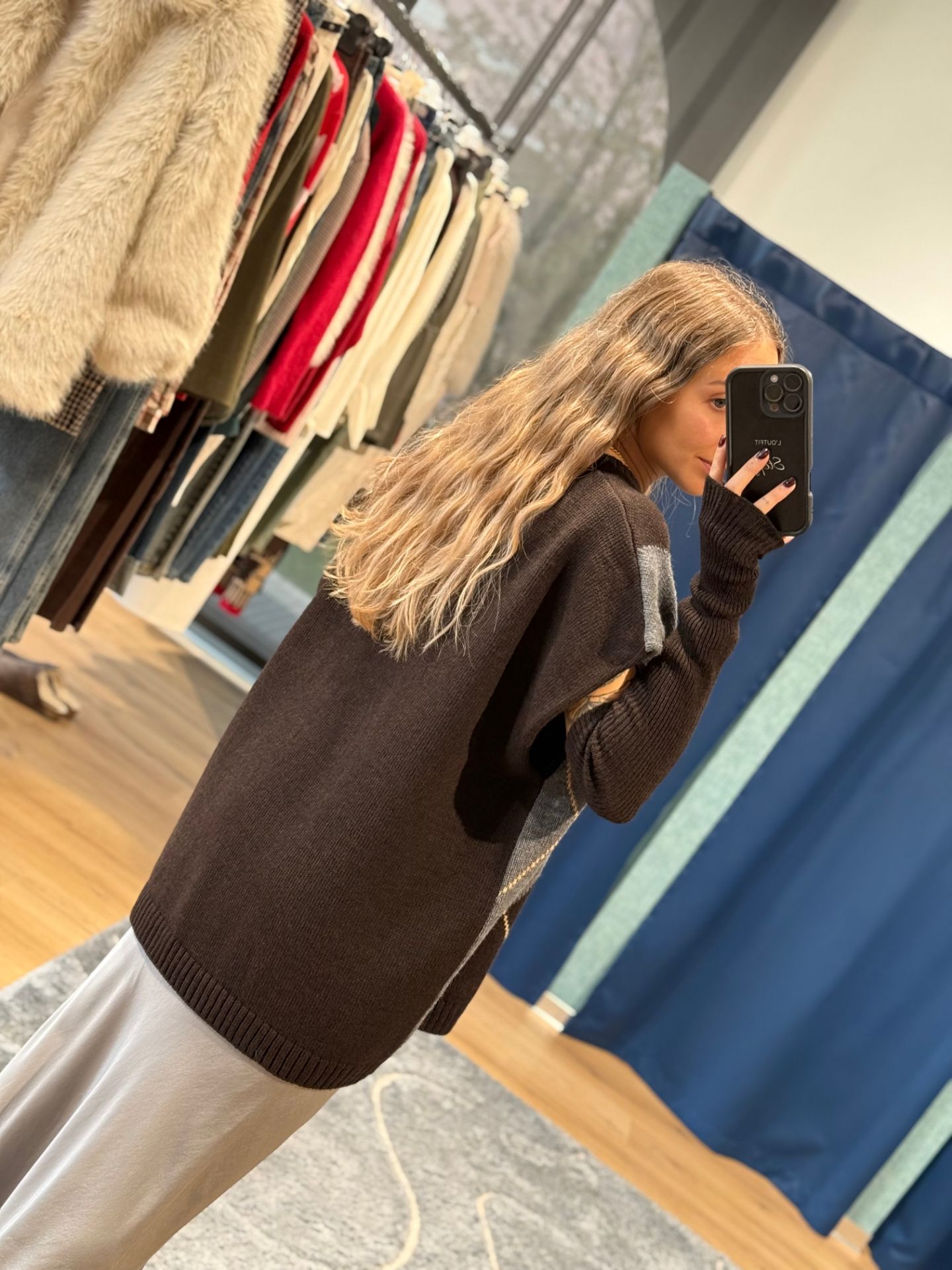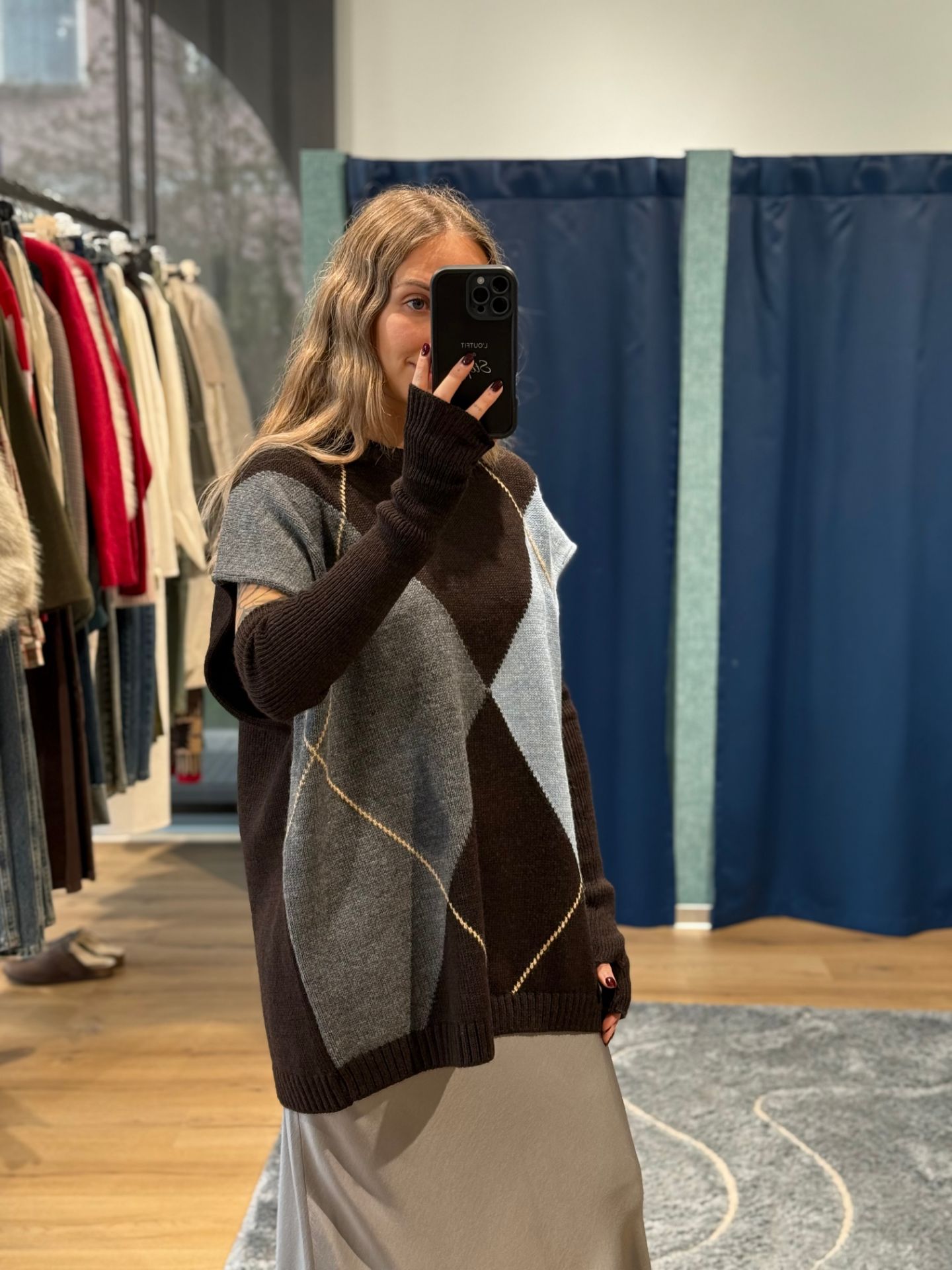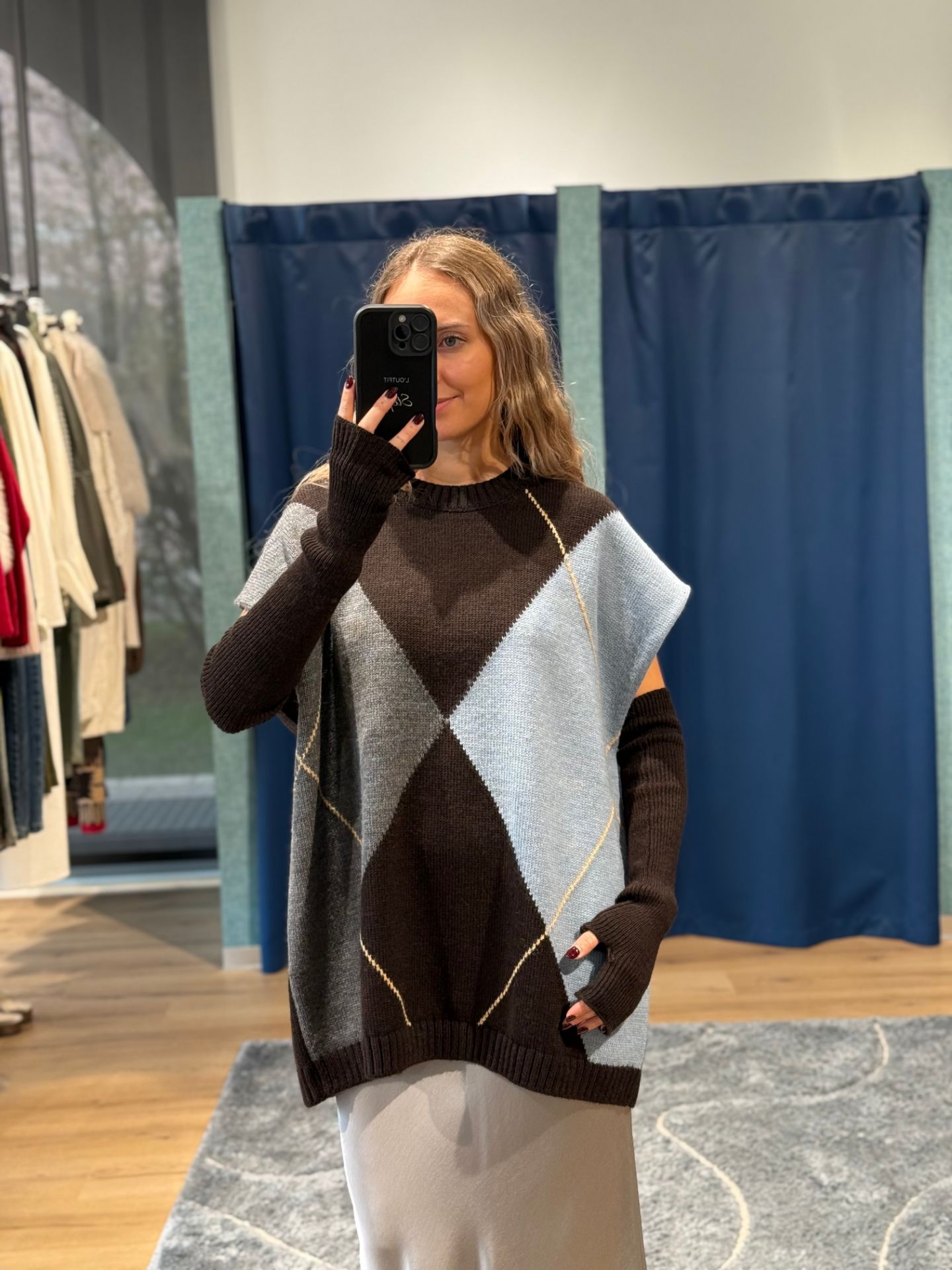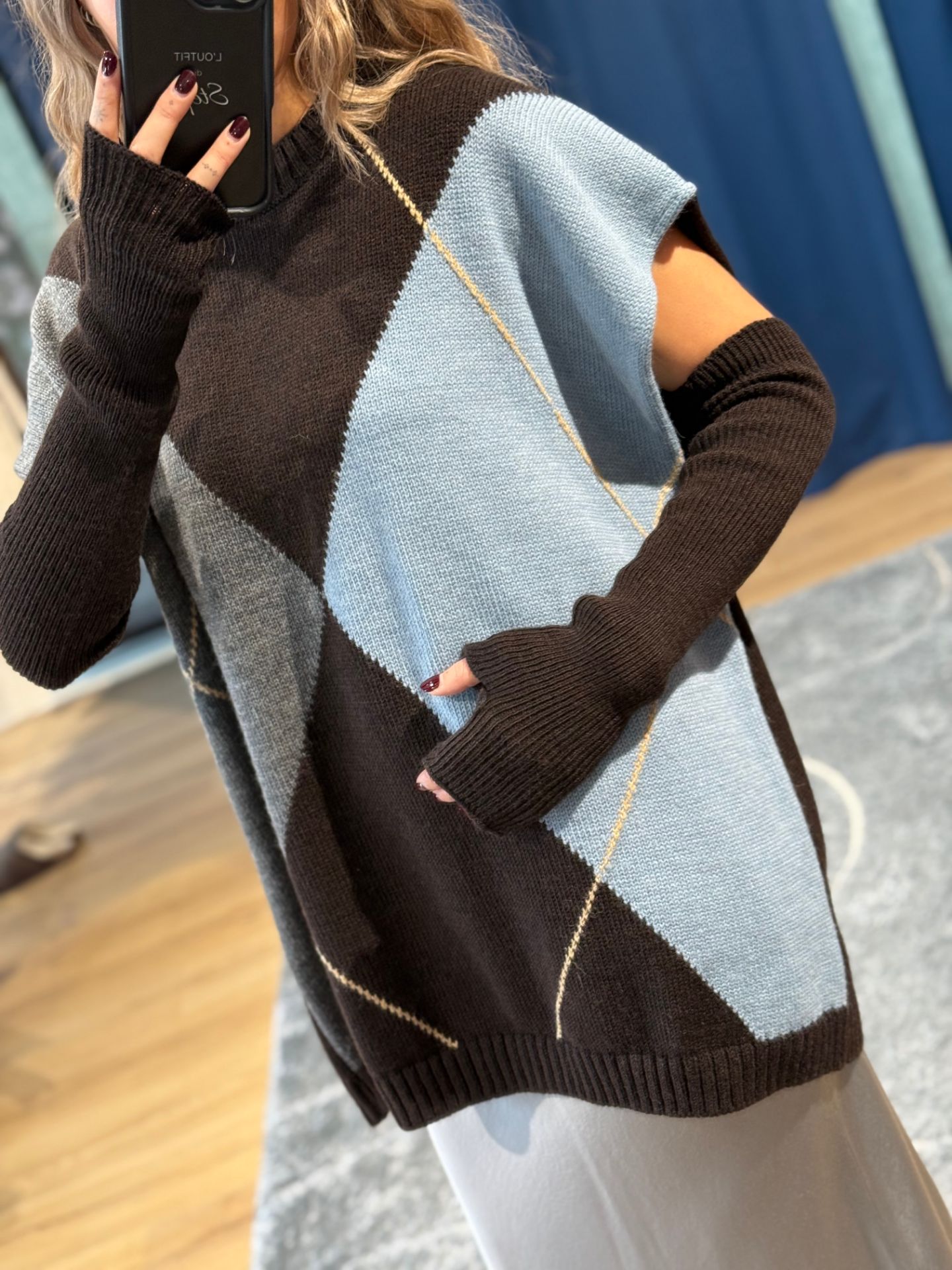 Gilet oversize a rombi con manicotti.