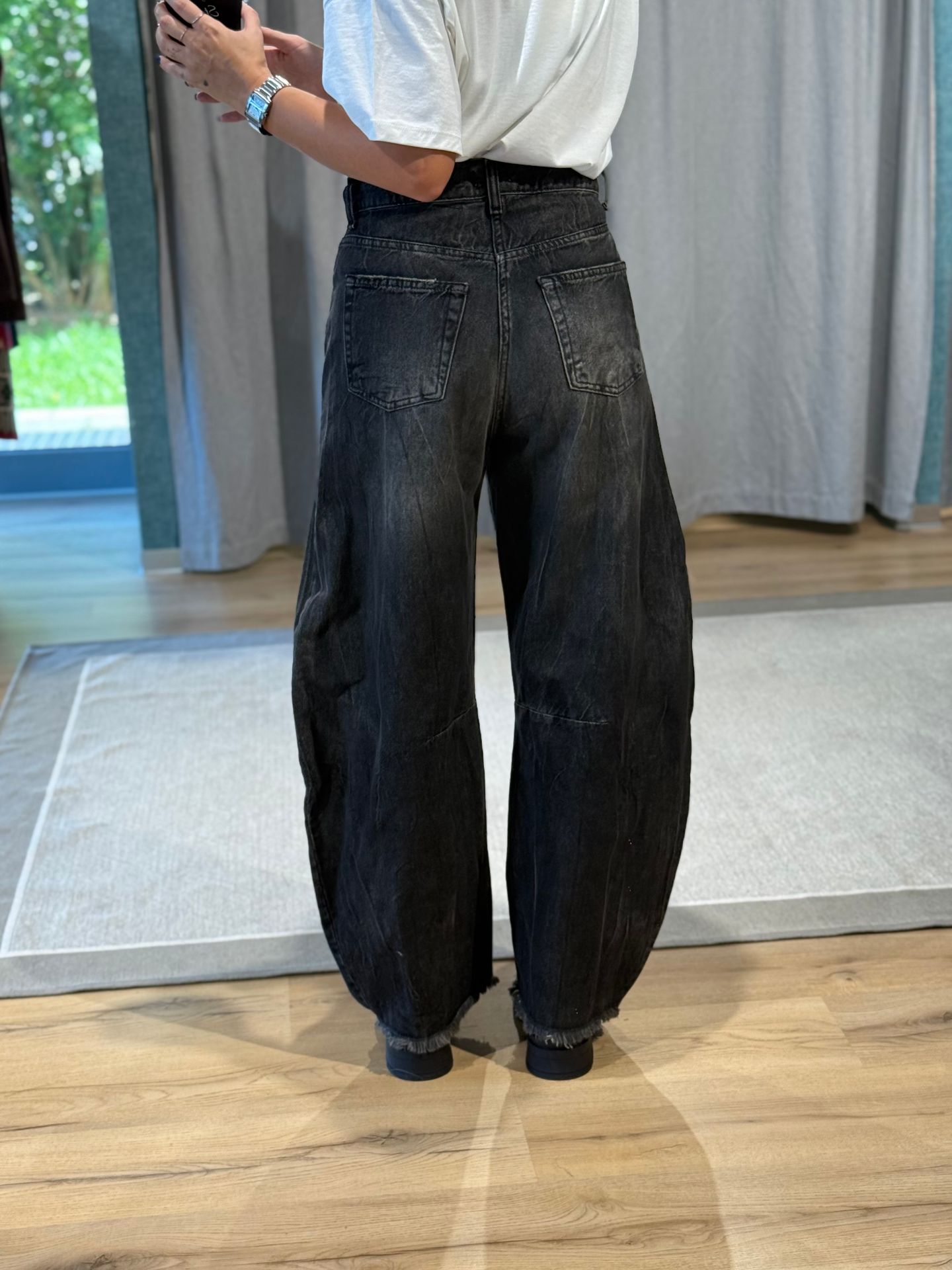 Jeans a banana nero slavato, vestibilità regolare