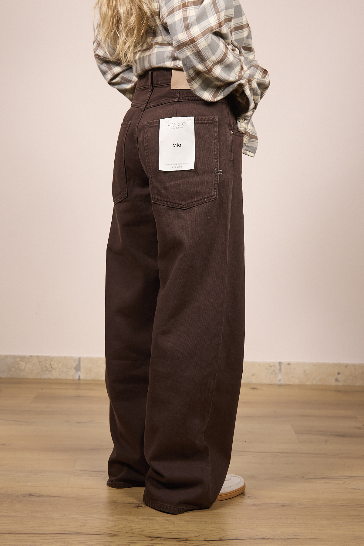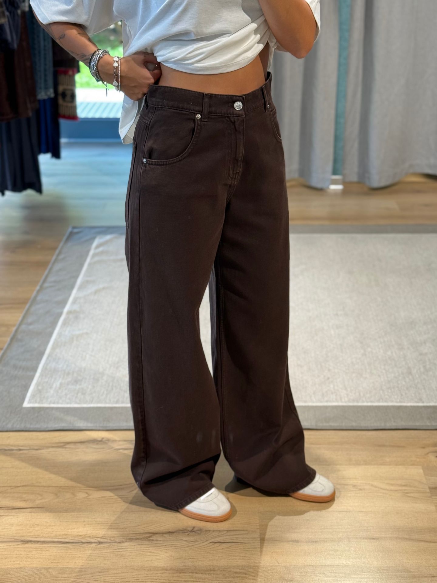 Jeans a palazzo lavaggio marrone pieno Vestibilità regolare