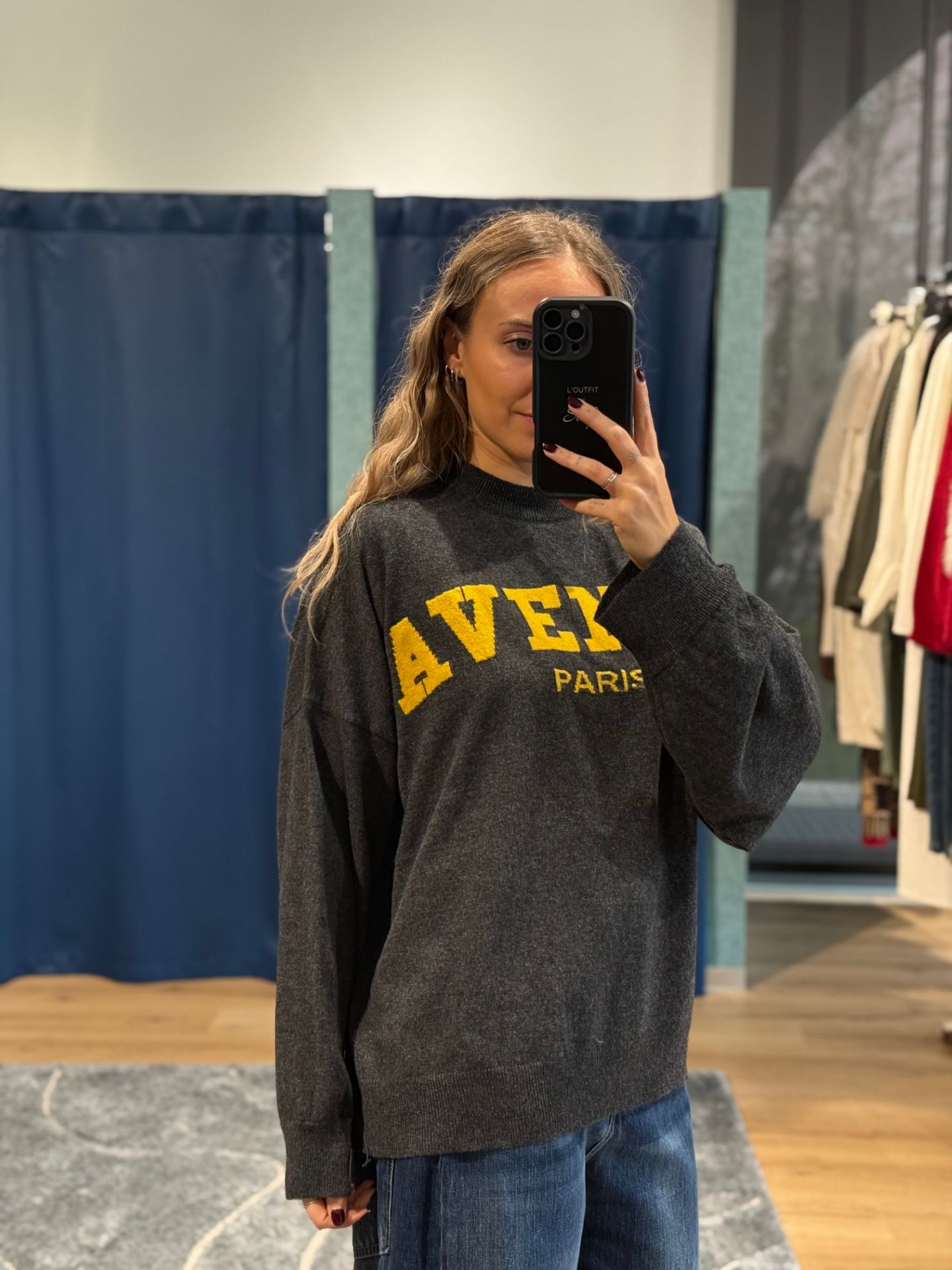 Maglione in misto lana e cashmere con scritta “Avenue Paris” a contrasto.