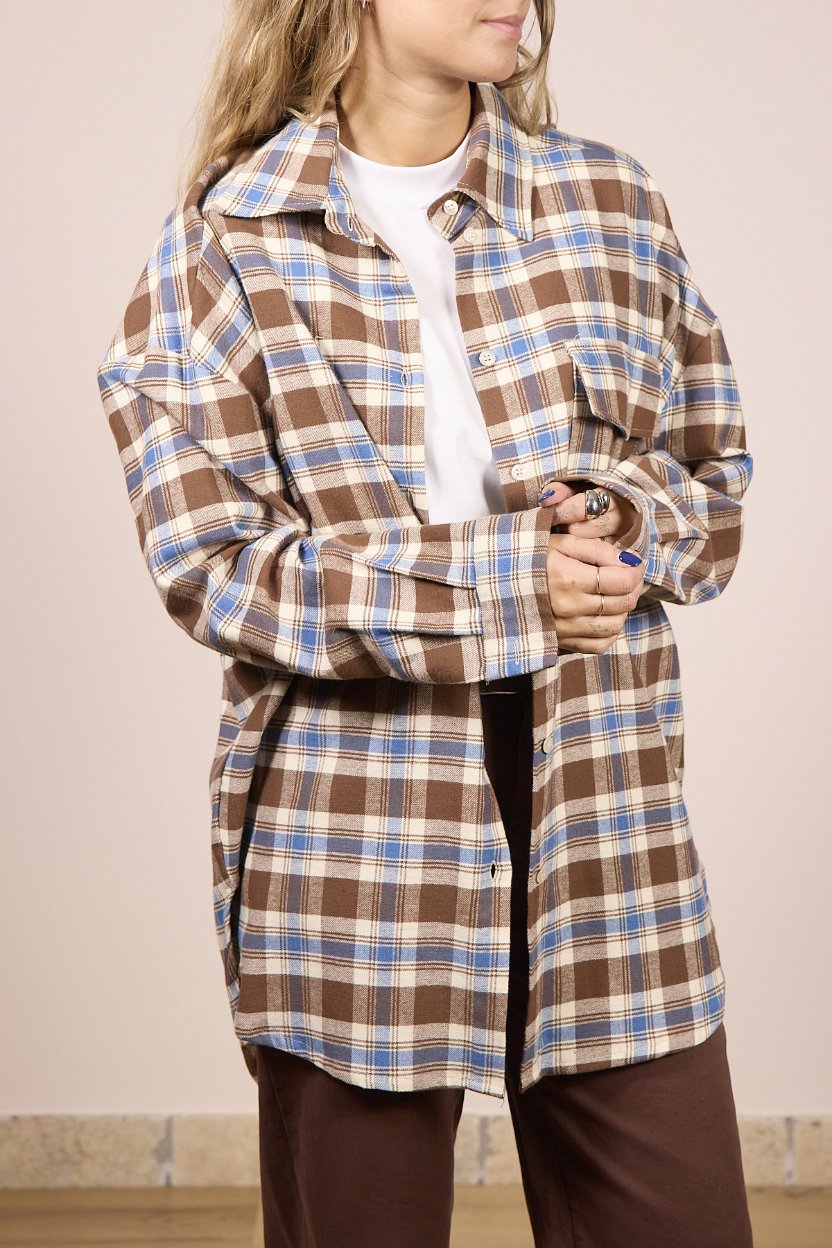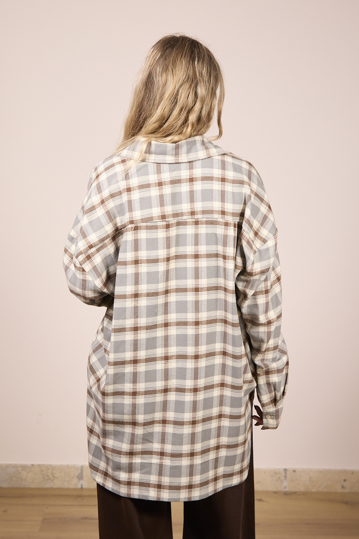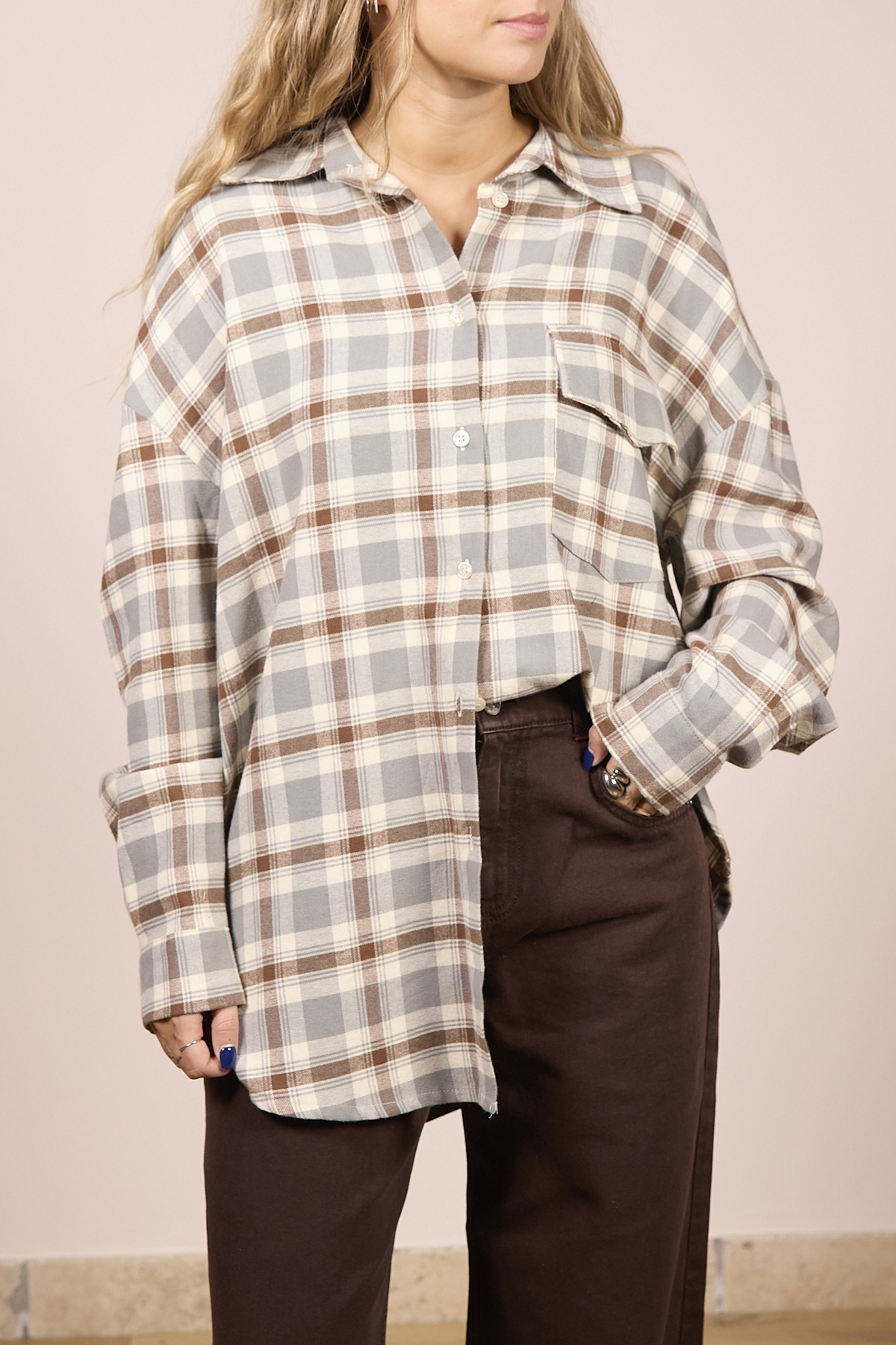 Maxi camicia over a quadri.