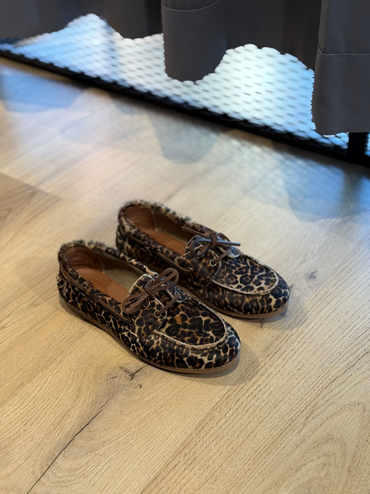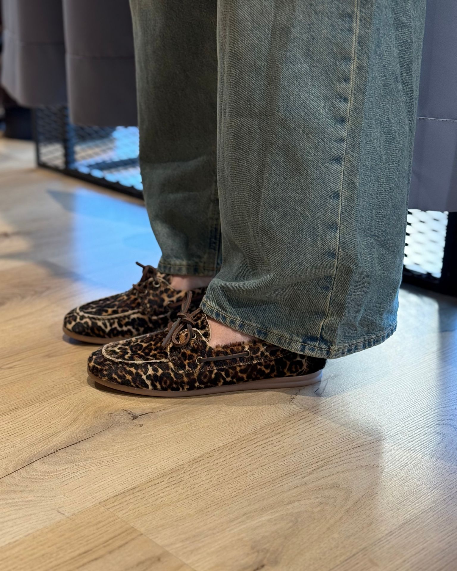 Mocassino in cavallino maculato con plantare morbido imbottito. Scelta doppio laccio.