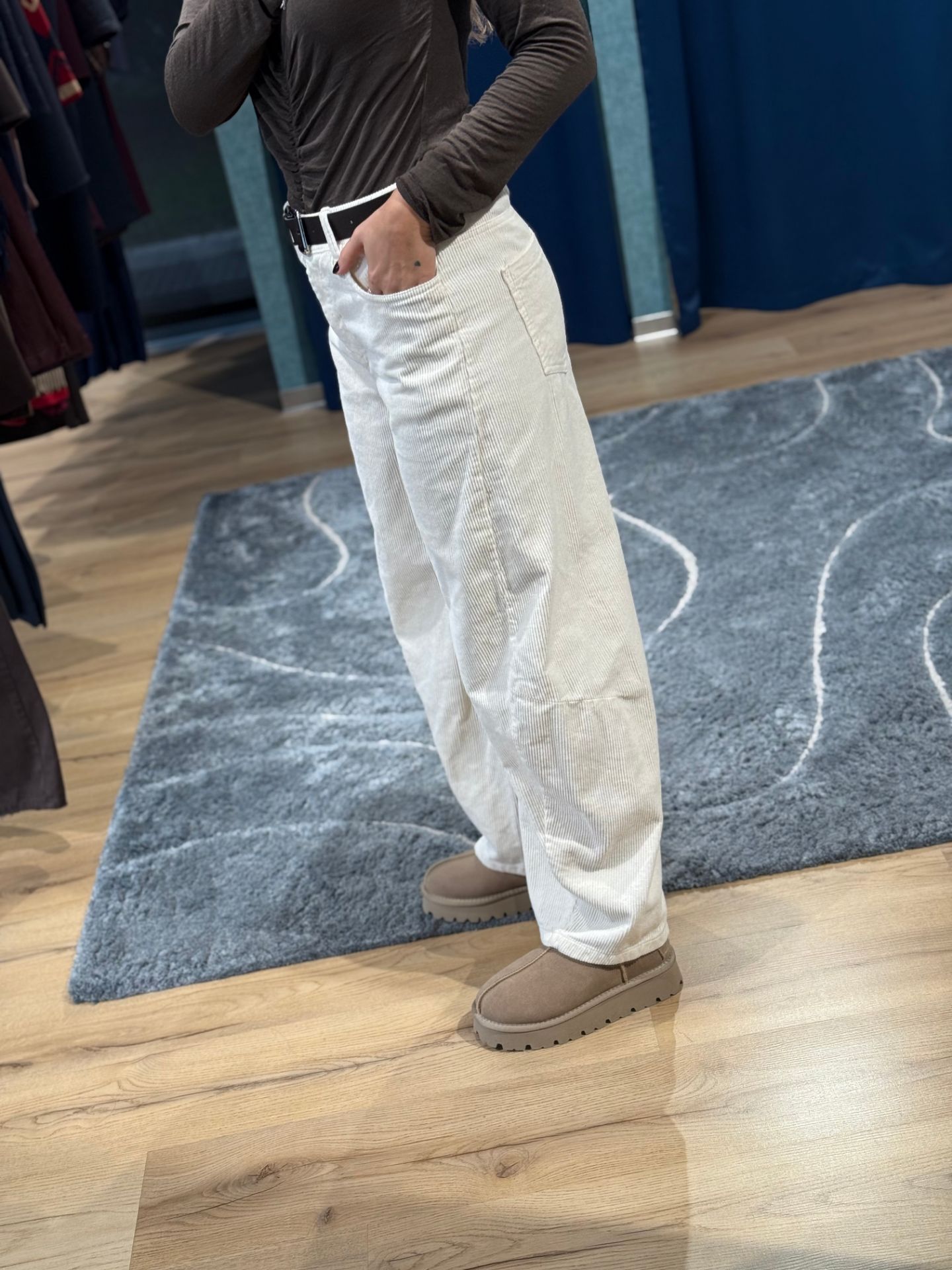 Pantalone baloon in velluto a coste. Vestibilità regolare.