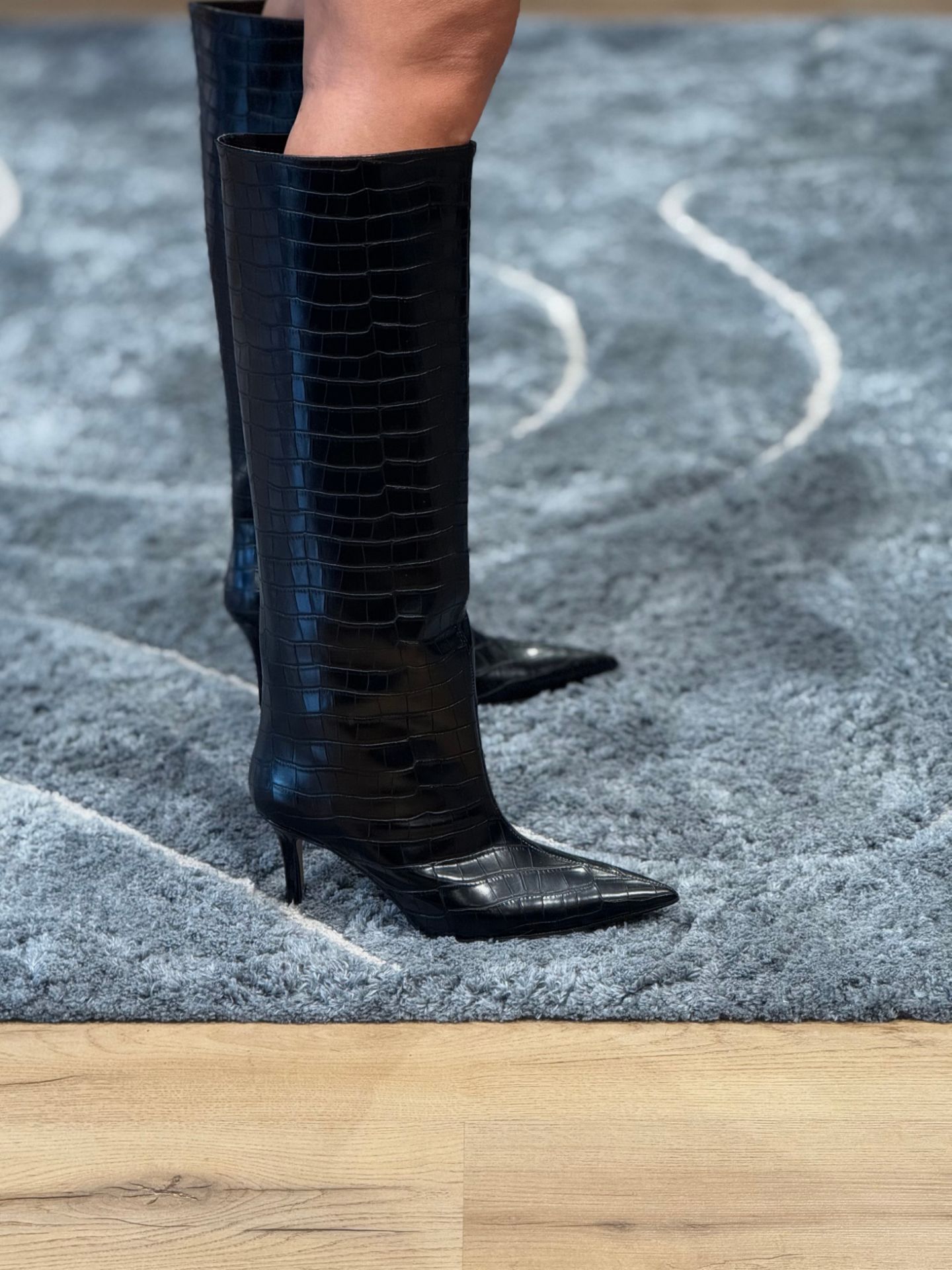 Stivale alto con tacco 8cm in similpelle effetto cocco.